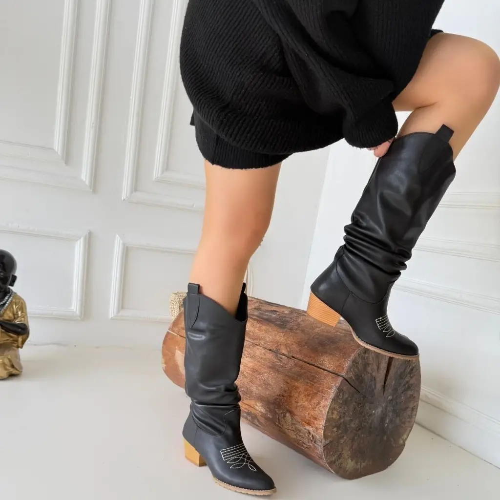 Detay: Topuklu Diz Altı Koboy Körüklü Çizme
