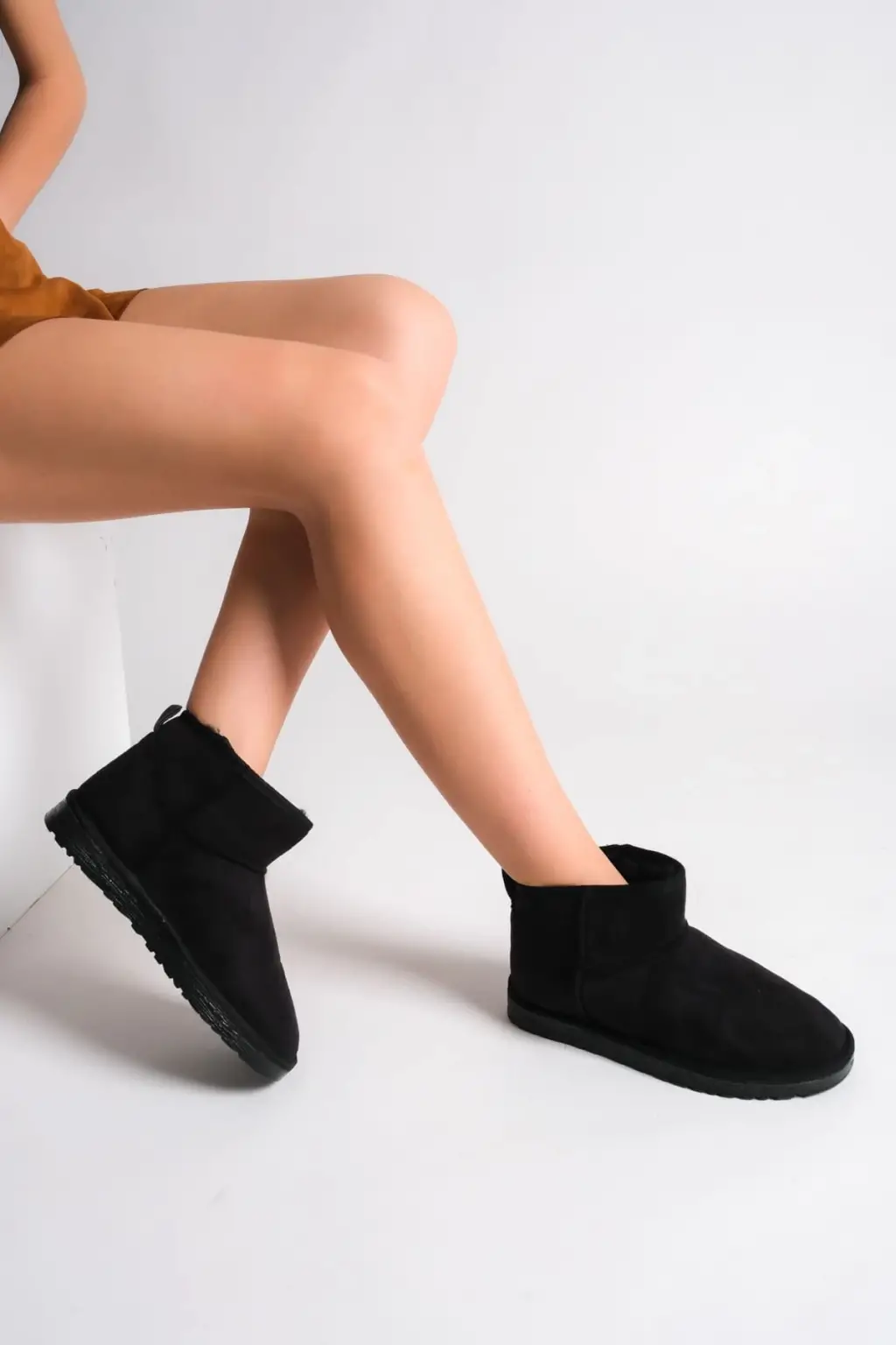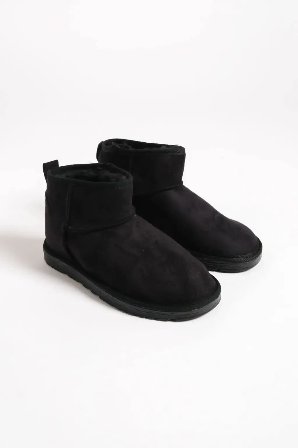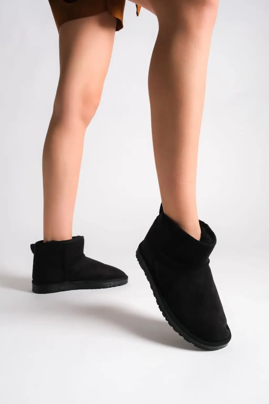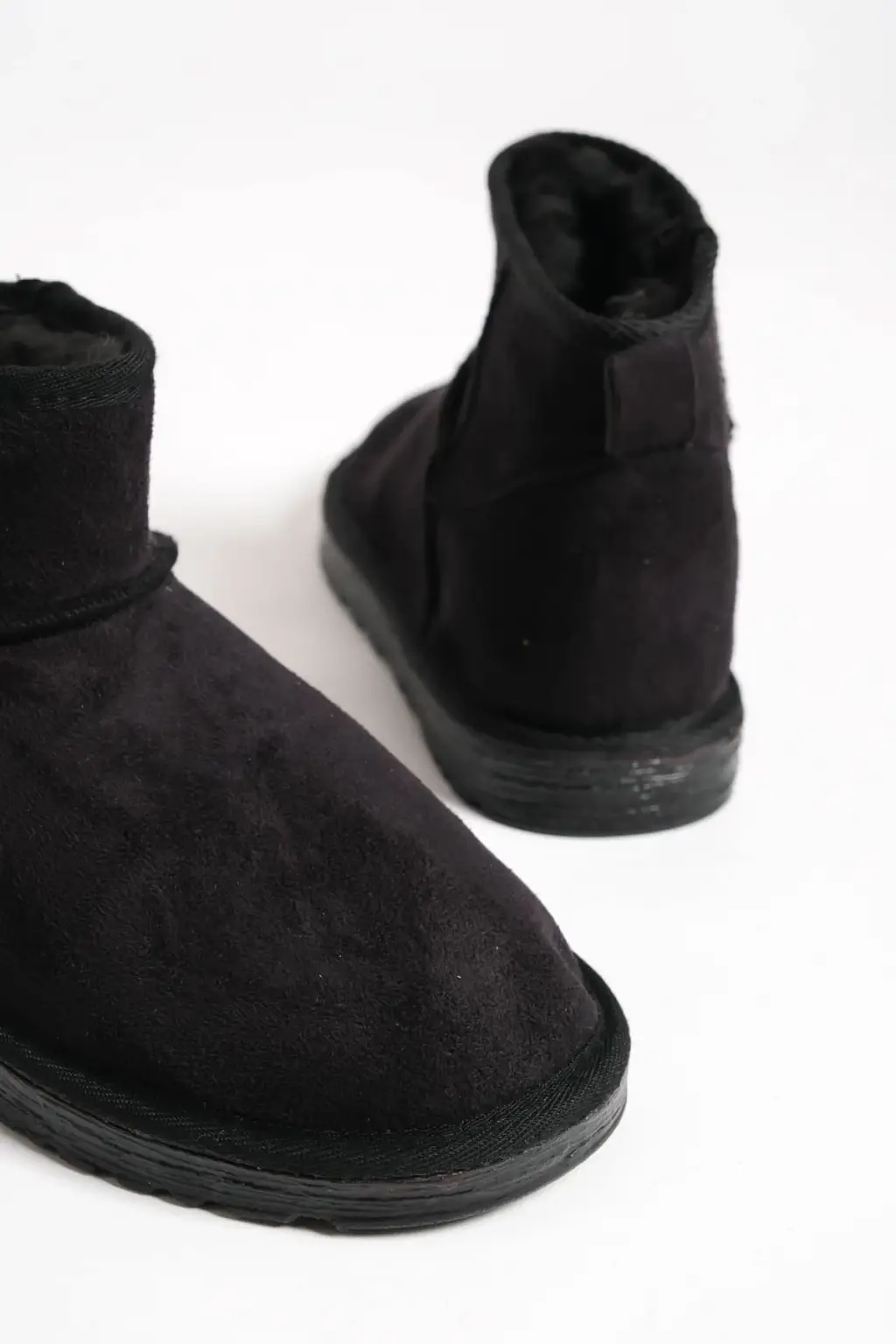 Omarı Kürklü Düz Siyah Bayan Bot - Şık ve Rahat Günlük Kullanım İçin