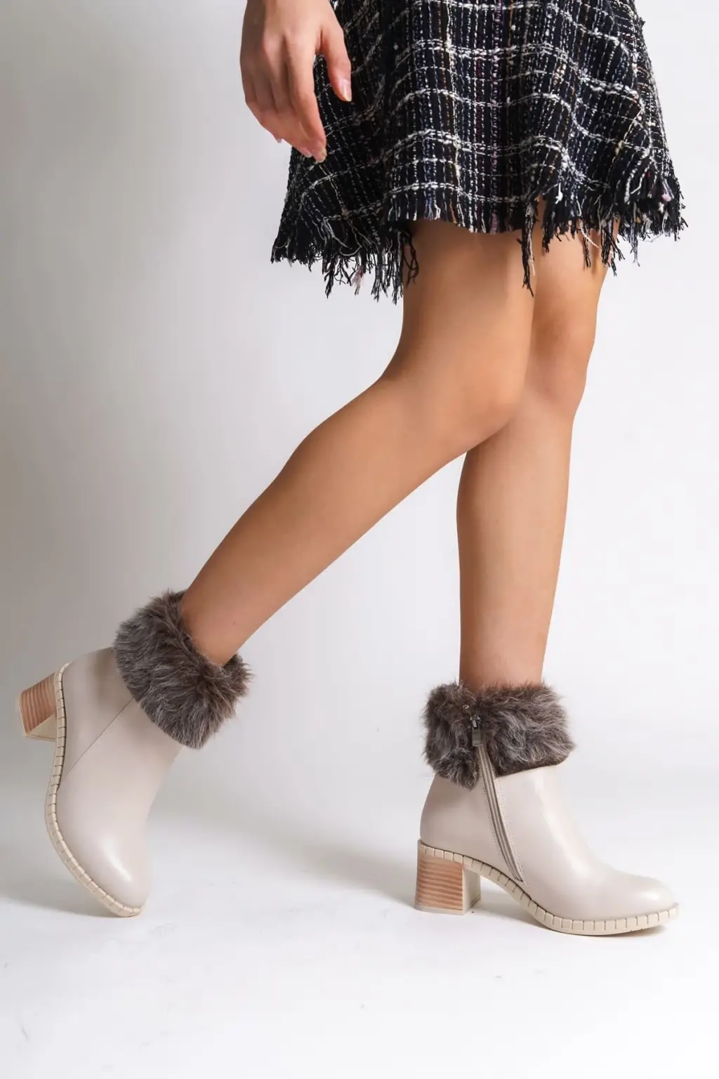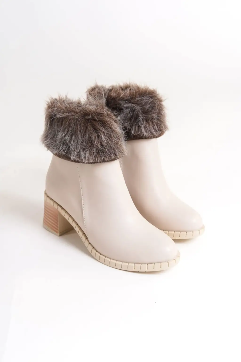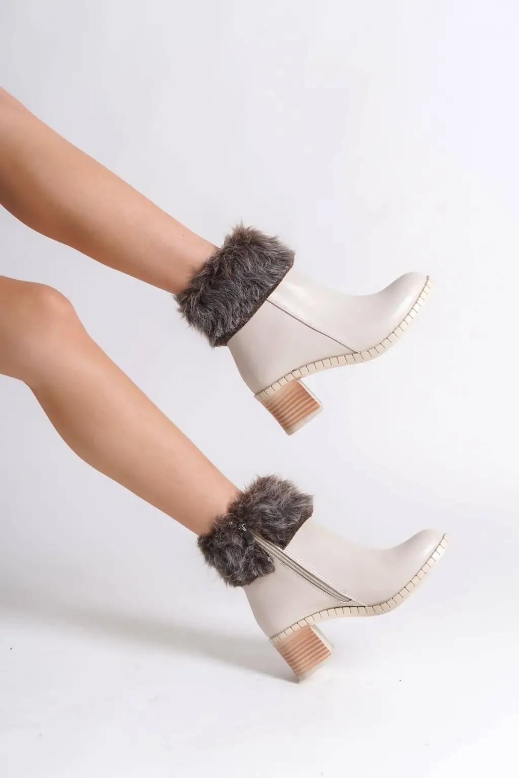 Zarif Tabaan Tüylü Topuklu Bayan Bot