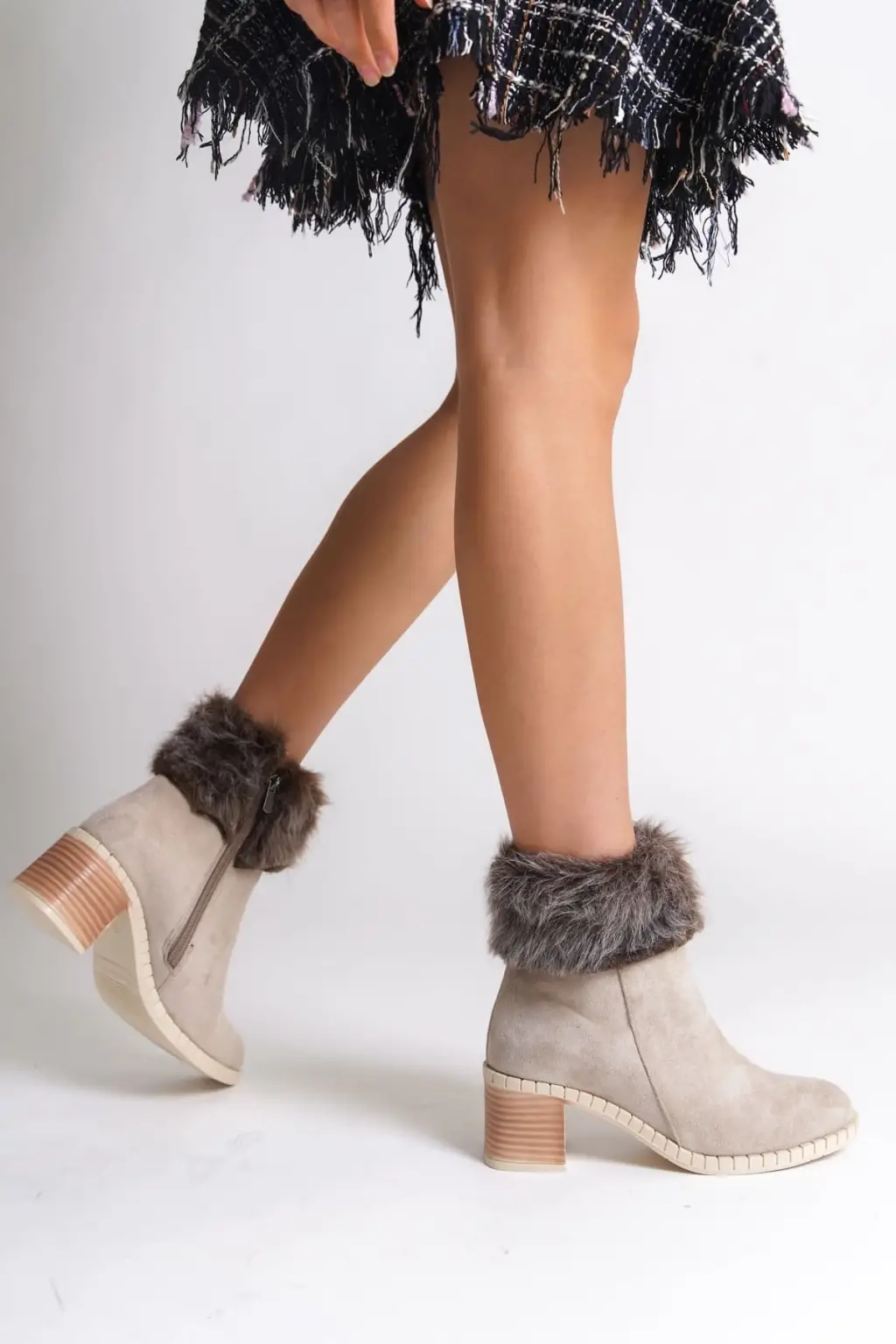Modern Tabaan Topuklu Süet Bayan Bot