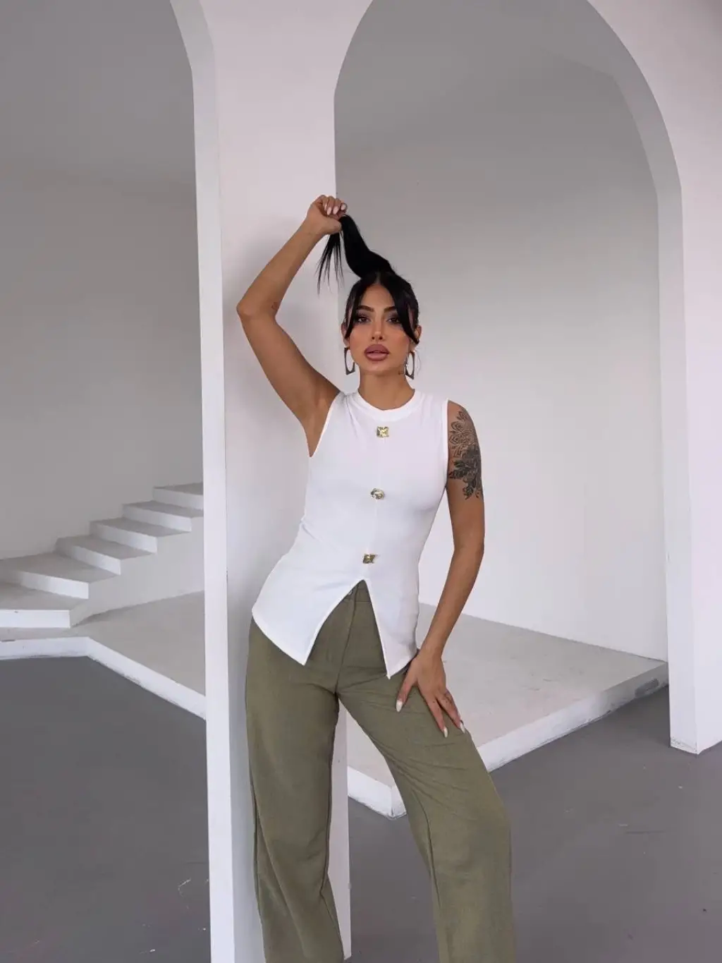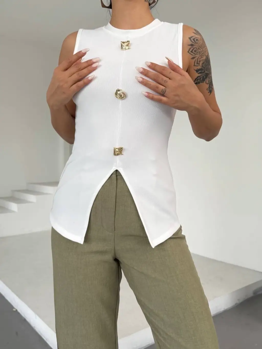 Şıklığı ve rahatlığı bir arada sunan Kadın Beyaz Bisiklet Yaka Gold Düğmeli Ottoman Bluz S2310, günlük kullanımdan özel davetlere kadar birçok farklı kombinle harika görünmenizi sağlar.