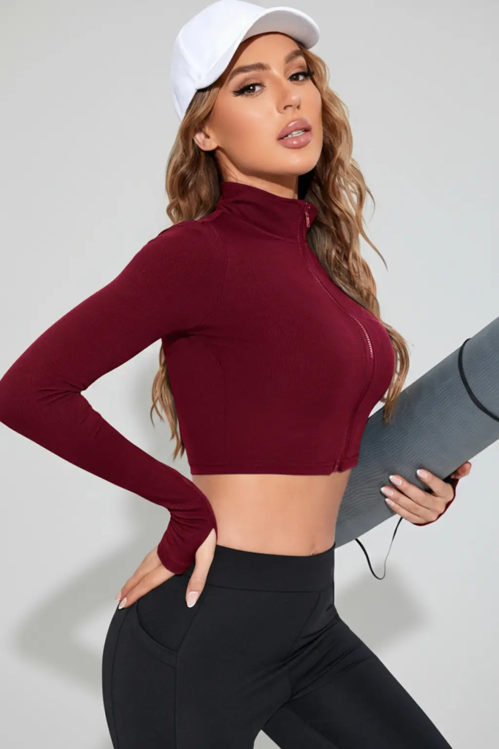 Spor şıklığını modern bir tarzla birleştiren Bordo Uzun Kol Fermuarlı Parmak Geçme Detaylı Bluz, günlük stilinizi hem rahat hem de iddialı bir görünüme kavuşturur. Esnek ve nefes alabilen ribana dokulu kumaşı sayesinde vücudu nazikçe sarar, gün boyu konfor sunar. Antrenmanlardan günlük kombinlere kadar çok yönlü kullanım için idealdir.