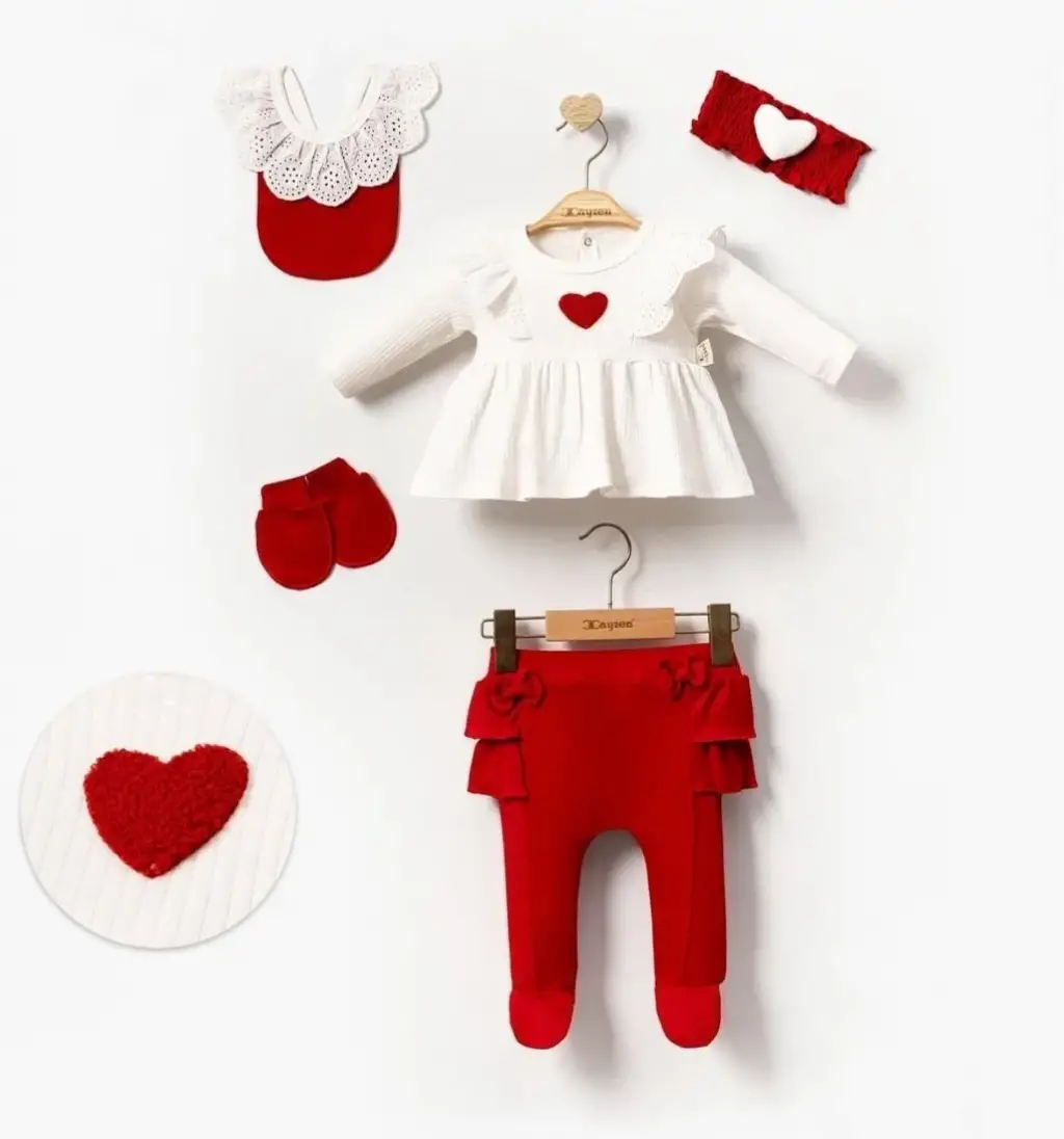 Kalp Baskılı Kutulu 5 Parça Hastane Çıkışı Seti %100 Pamuk