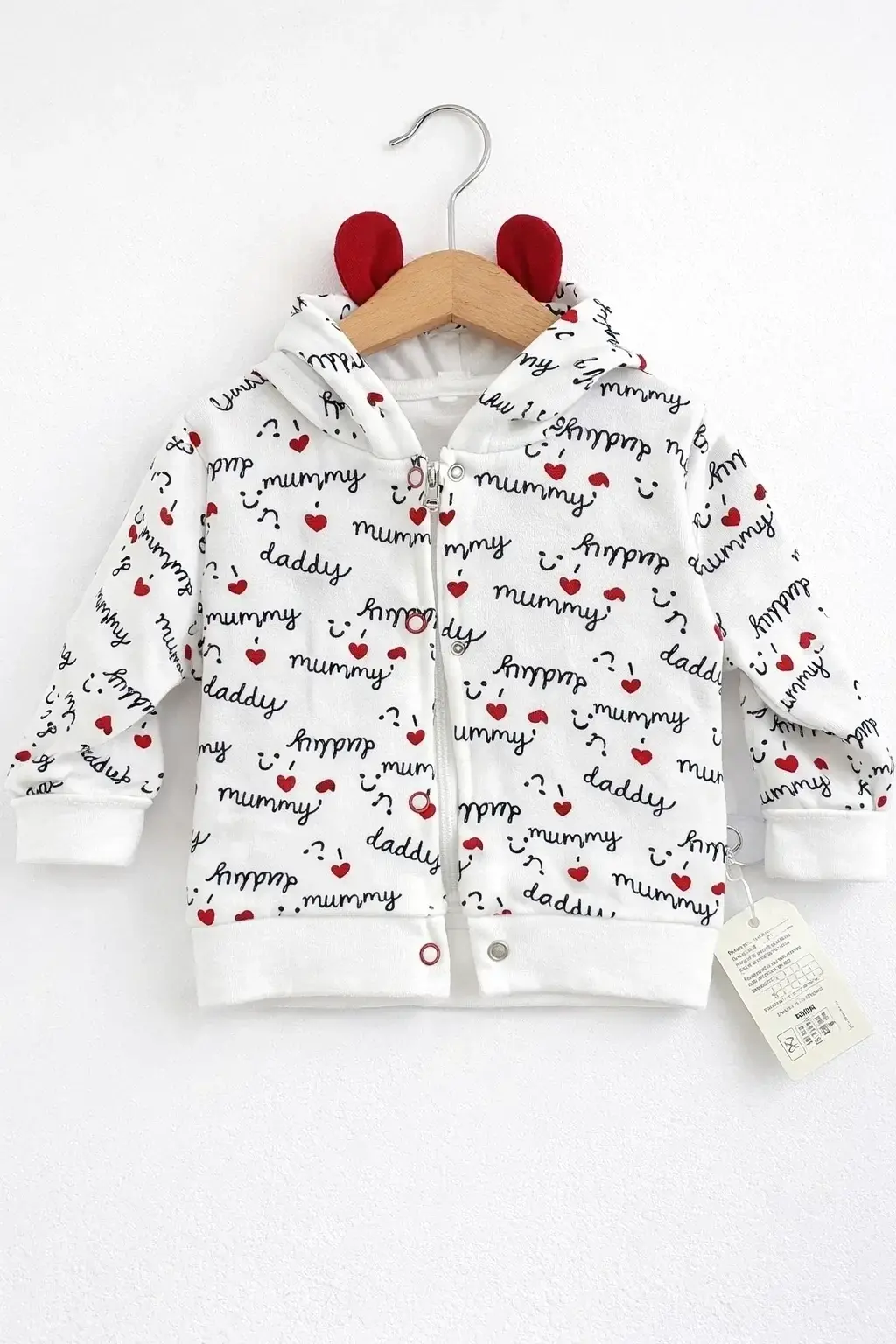 Kalp Desenli Kulaklı 3 Lü Kız Bebek Takımı
