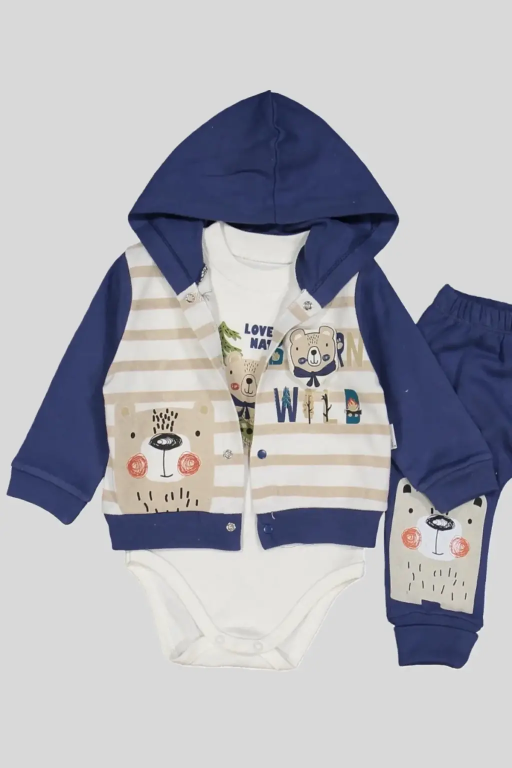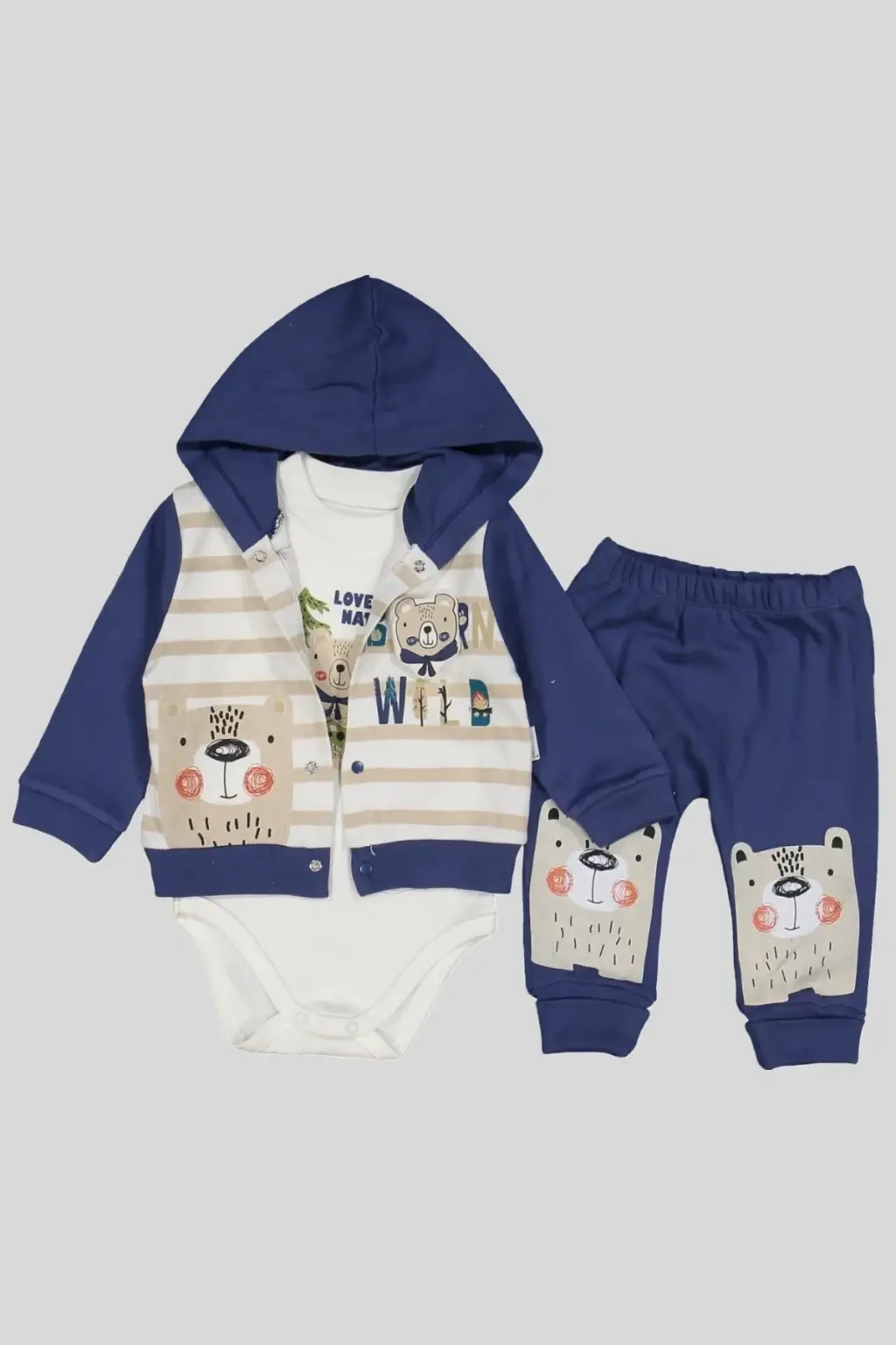 Kamp Desenli Kapüşonlu % 100 Pamuk Erkek Bebek Takımı