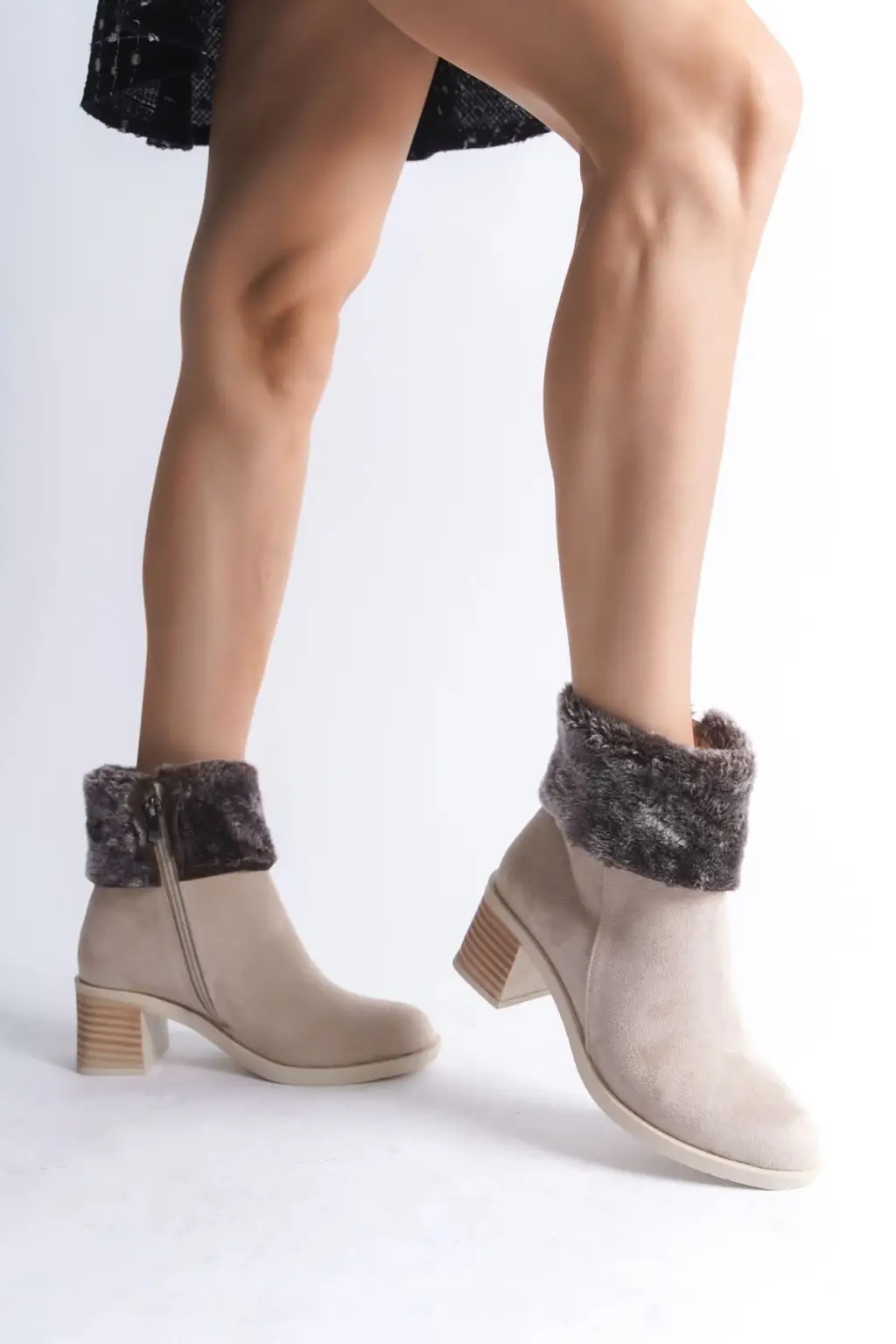 Omarı Tabaan Topuklu Kürk Detaylı Süet Bayan Bot
