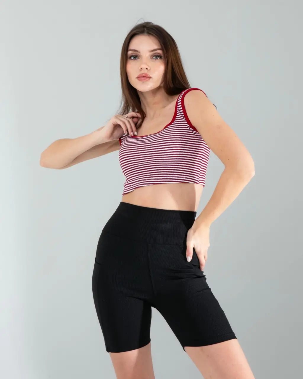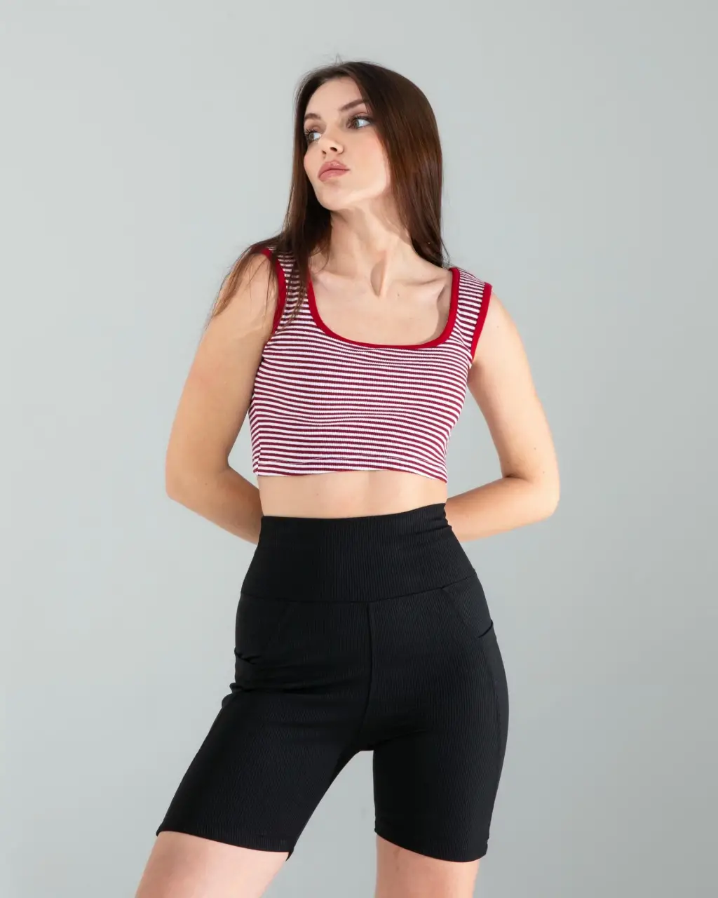 Kırmızı Çizgili Basic Crop
