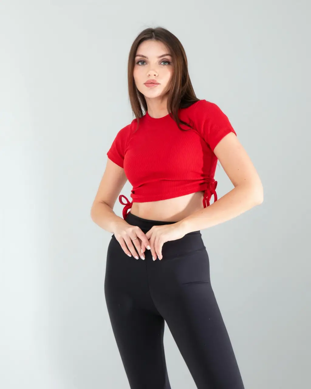 Kırmızı Yandan Büzgülü Fitilli Crop