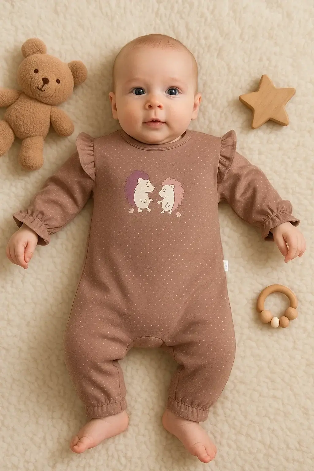 Kirpi Nakışlı % 100 Pamuk Kız Bebek Tulum
