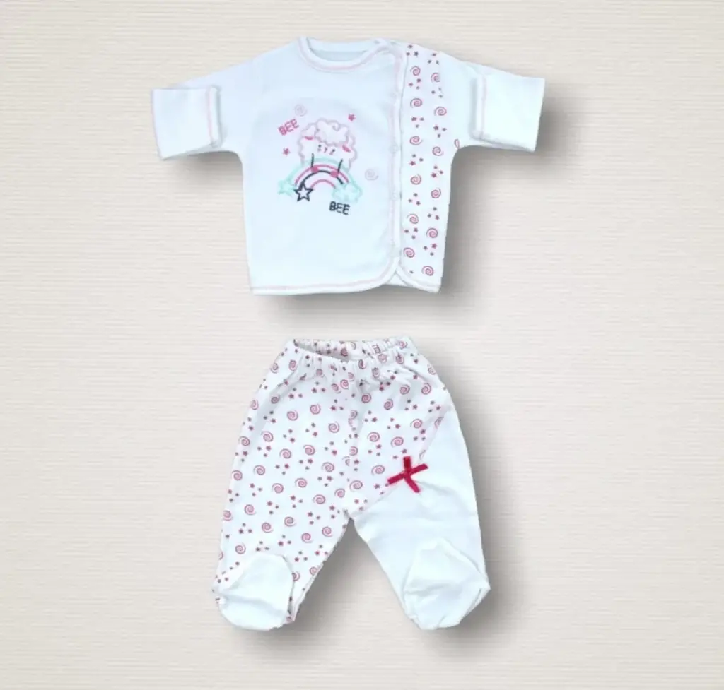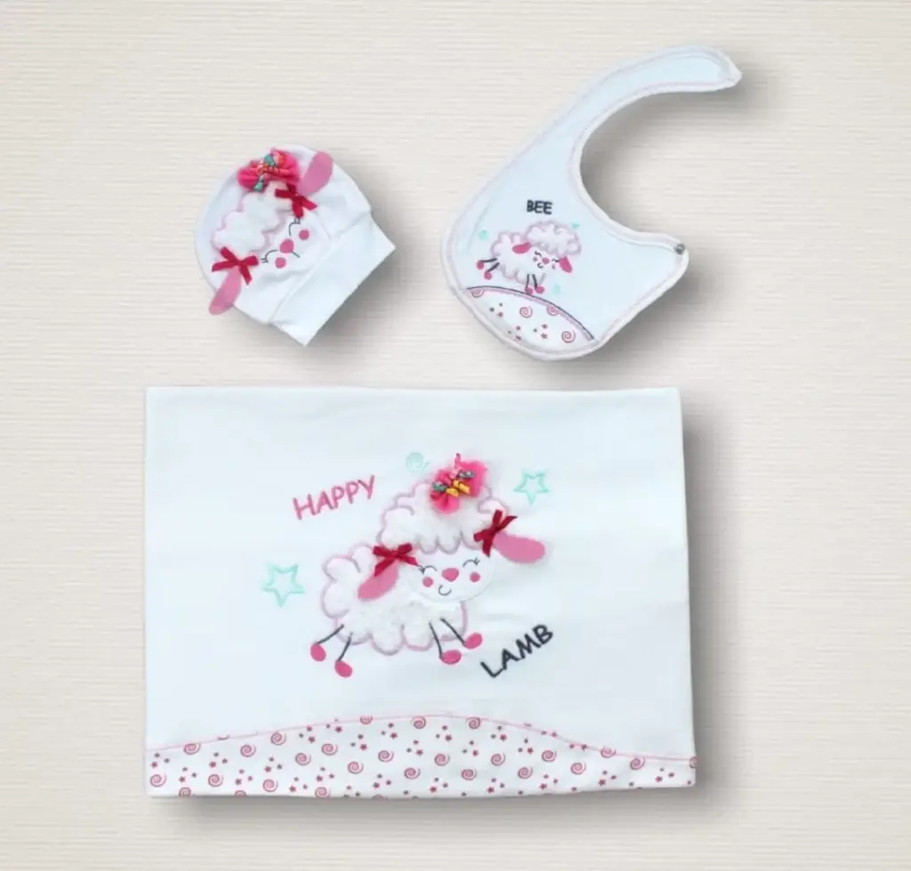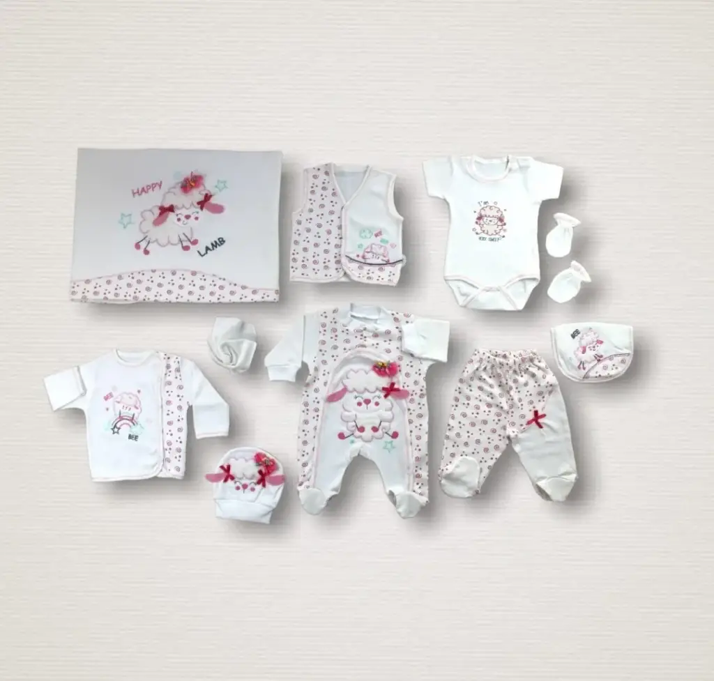 Kıvırcık Kuzu Nakışlı %100 Cotton Antibakteriyel 10lu Zıbın Takımı Hastane Çıkışı
