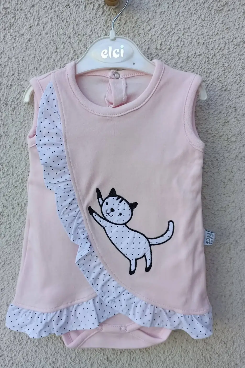 Kız Bebek Pembe Kedili Fırfırlı Bandanalı Badi