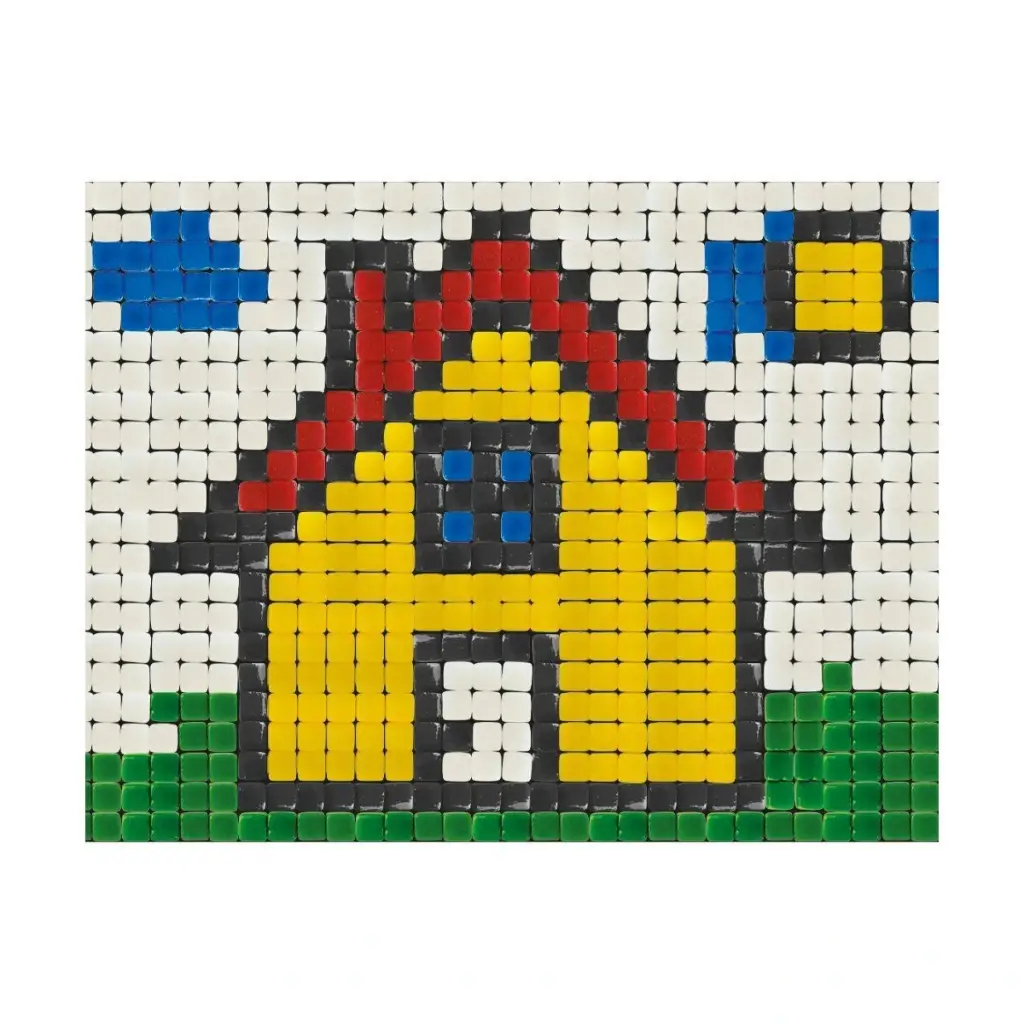 Cam Mozaik basılmış desenin uygun çerçeveye yerleştirilmesinden sonra renkli mozaik taşlarının