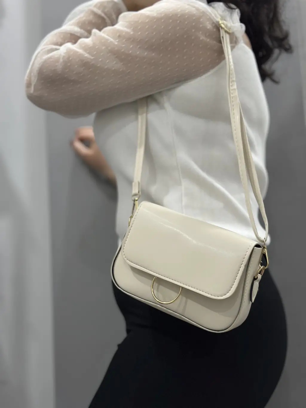 Bej cilt mossi çanta şıklığı ve kullanışlılığı bir arada sunar.