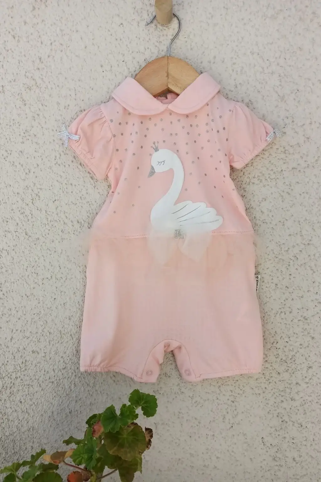 Kuğu Desenli Kız Tulum 3-6-9 Ay