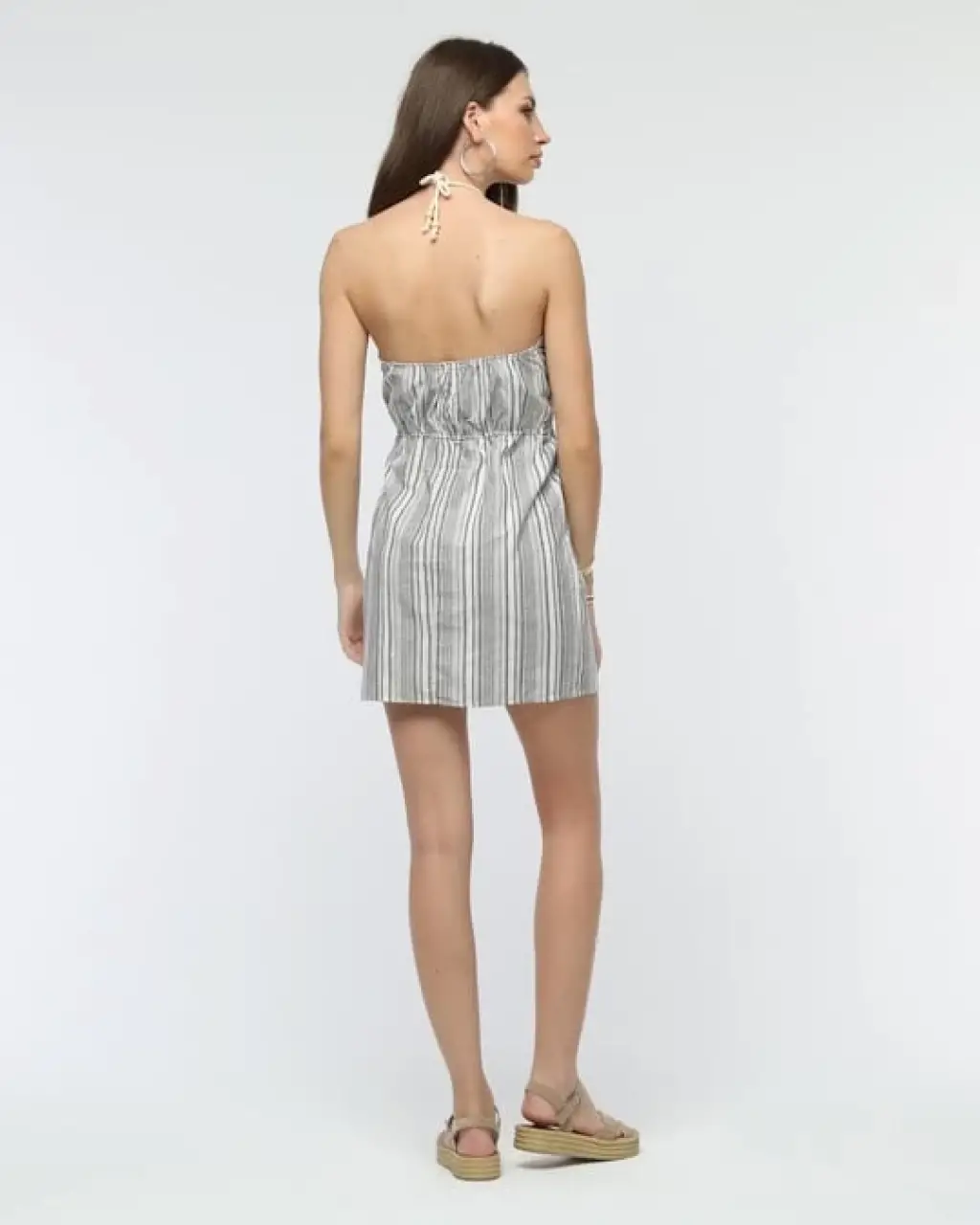 Çarpıcı Çizgili Mini Keten Elbise