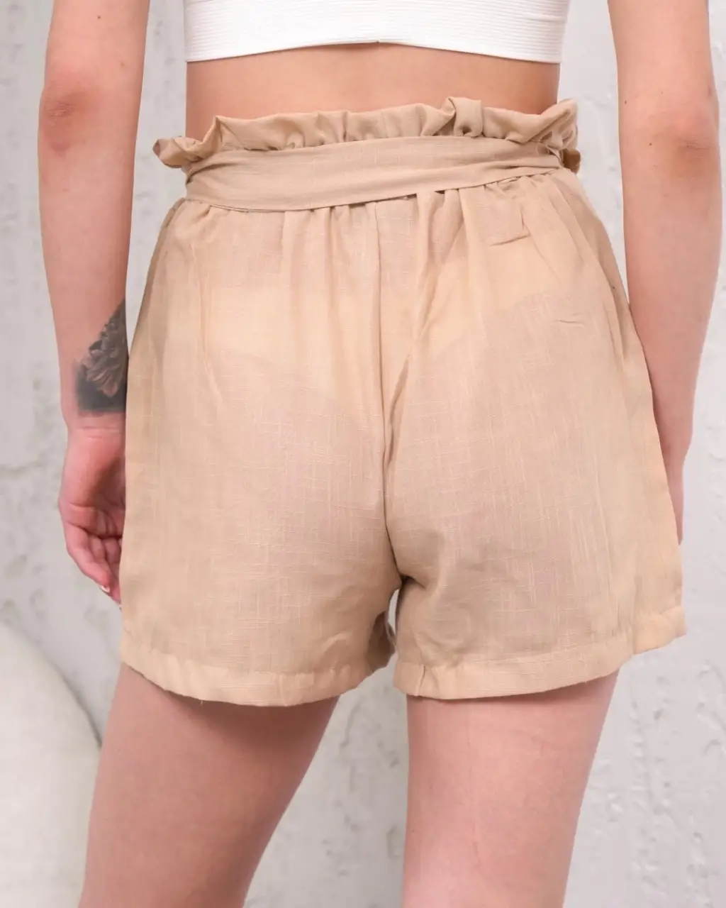 Yaz aylarının vazgeçilmezi olan Kuşaklı keten şort bej s255265, şıklığı ve rahatlığı bir arada sunuyor. Kendinizi hem özgür hem de şık hissetmek istediğinizde tercih edebileceğiniz bu şort, gardırobunuzun favori parçalarından biri olmaya aday.