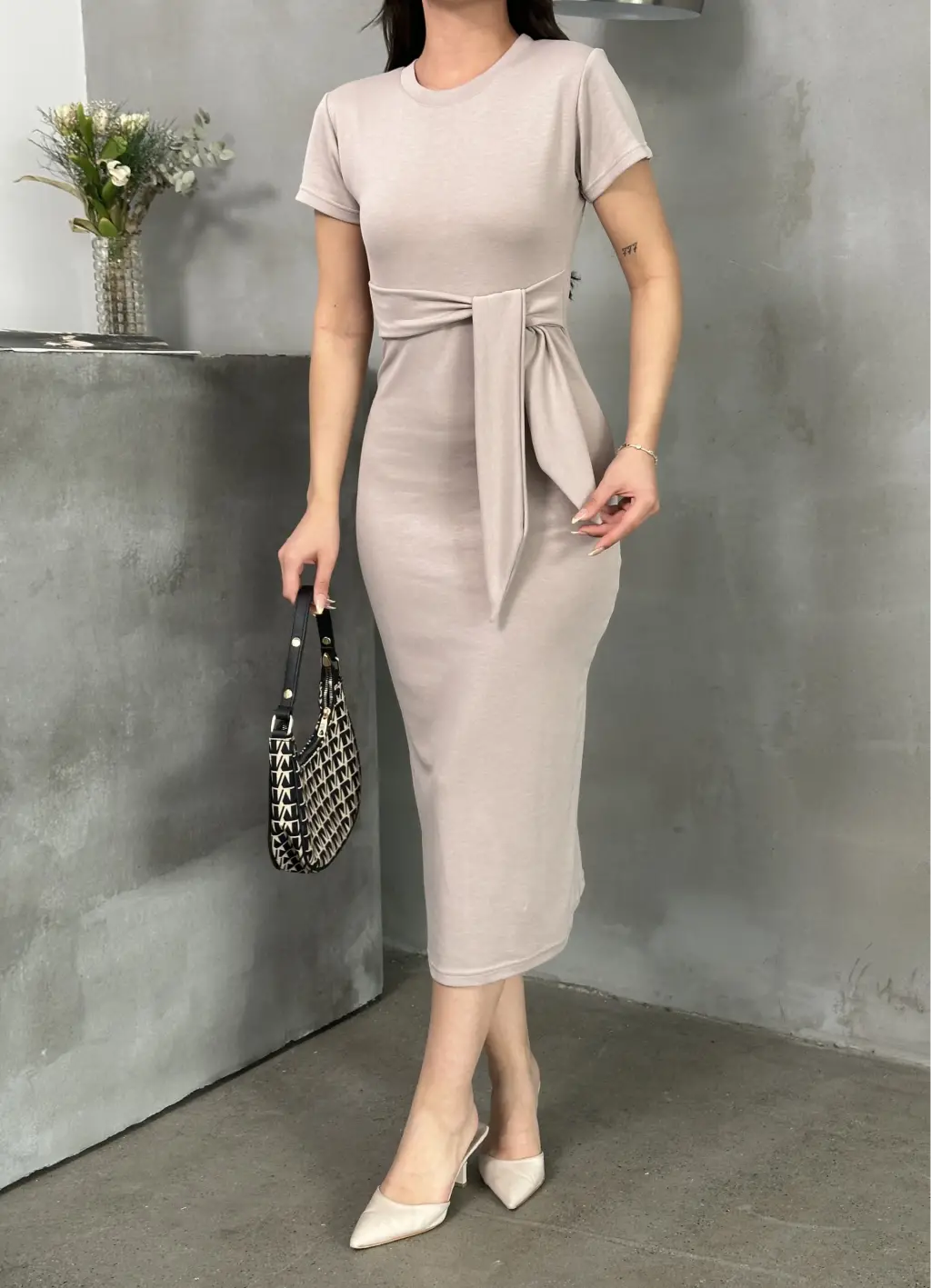 Şıklık ve konforun bir arada olduğu bu bej Kuşaklı Model Esnek Kumaşlı Elbise ile tarzınızı yansıtabilirsiniz.