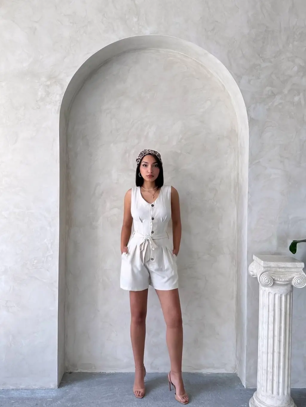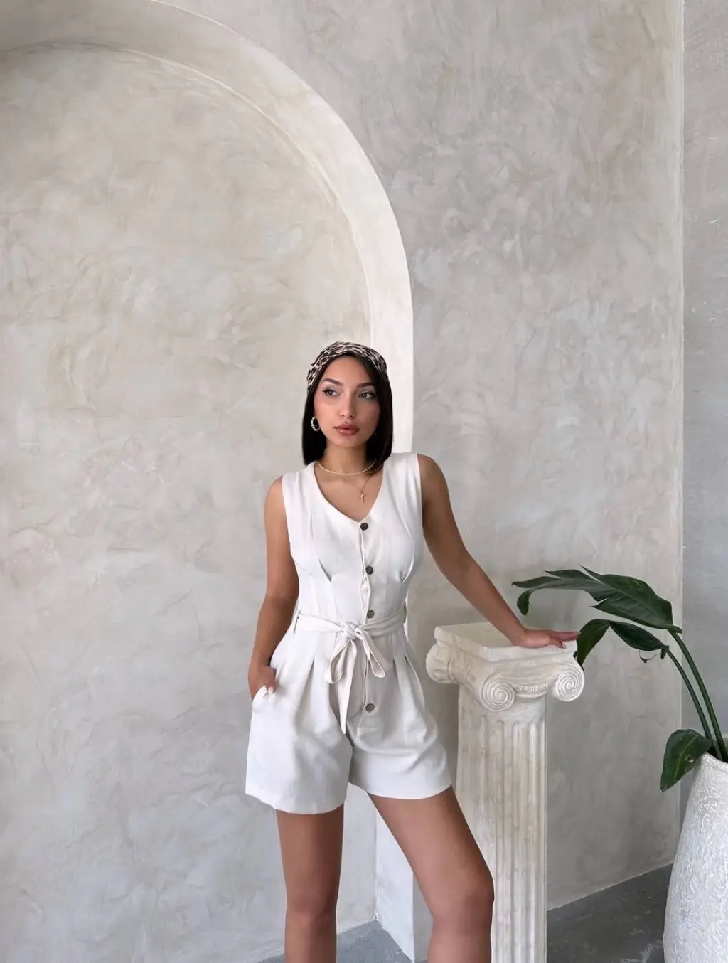 Şıklığı ve rahatlığı bir arada arayanların tercihi kuşaklı şortlu tulum, gardırobunuzun favorisi olmaya aday!