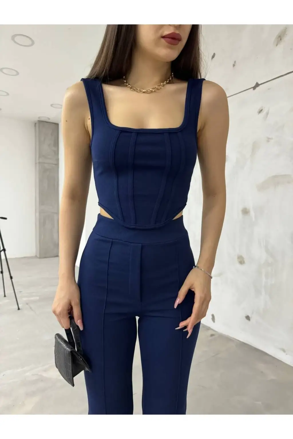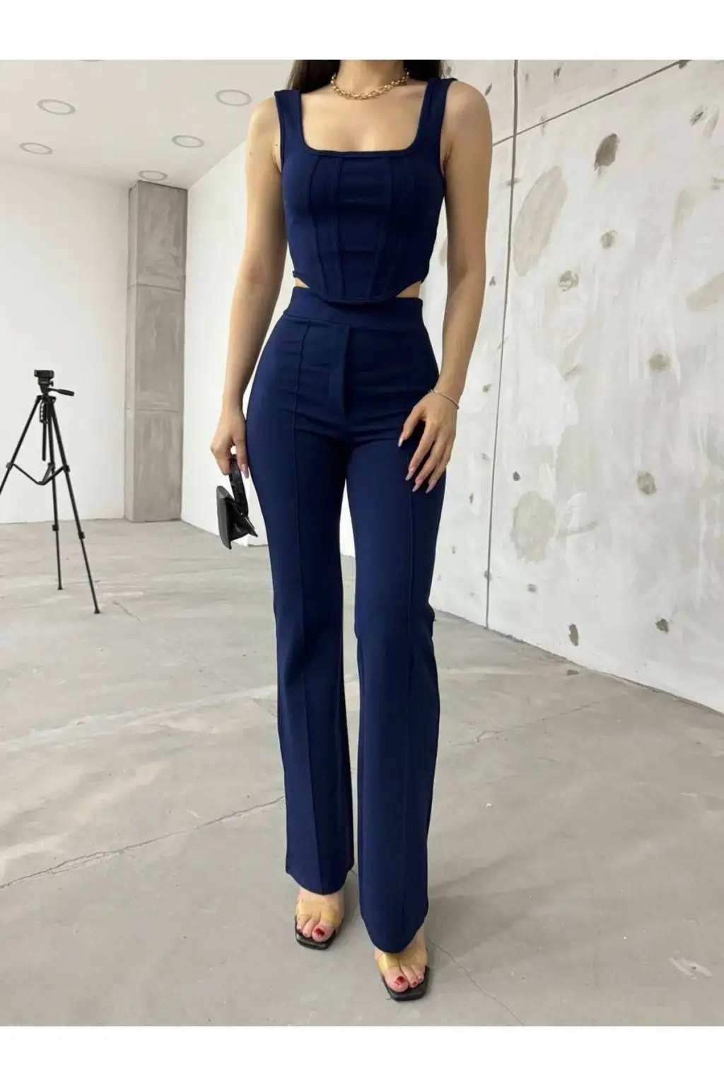 Modern ve şık tasarımıyla gardırobunuzun vazgeçilmezi olacak. Yumuşak ve esnek kumaşı sayesinde gün boyu rahatlık sunar. Bilyeli detayları ile dikkat çeken bu takım, hem günlük kullanım hem de özel günler için ideal bir seçimdir. Üst kısmı rahat kesimi ve alt kısmı yüksek bel pantolonuyla şıklığı ve konforu bir arada sunar. Makinede yıkanabilir ve uzun ömürlüdür. İndigo mavi rengi ile her mevsim modaya uygun bir görünüm sağlar.