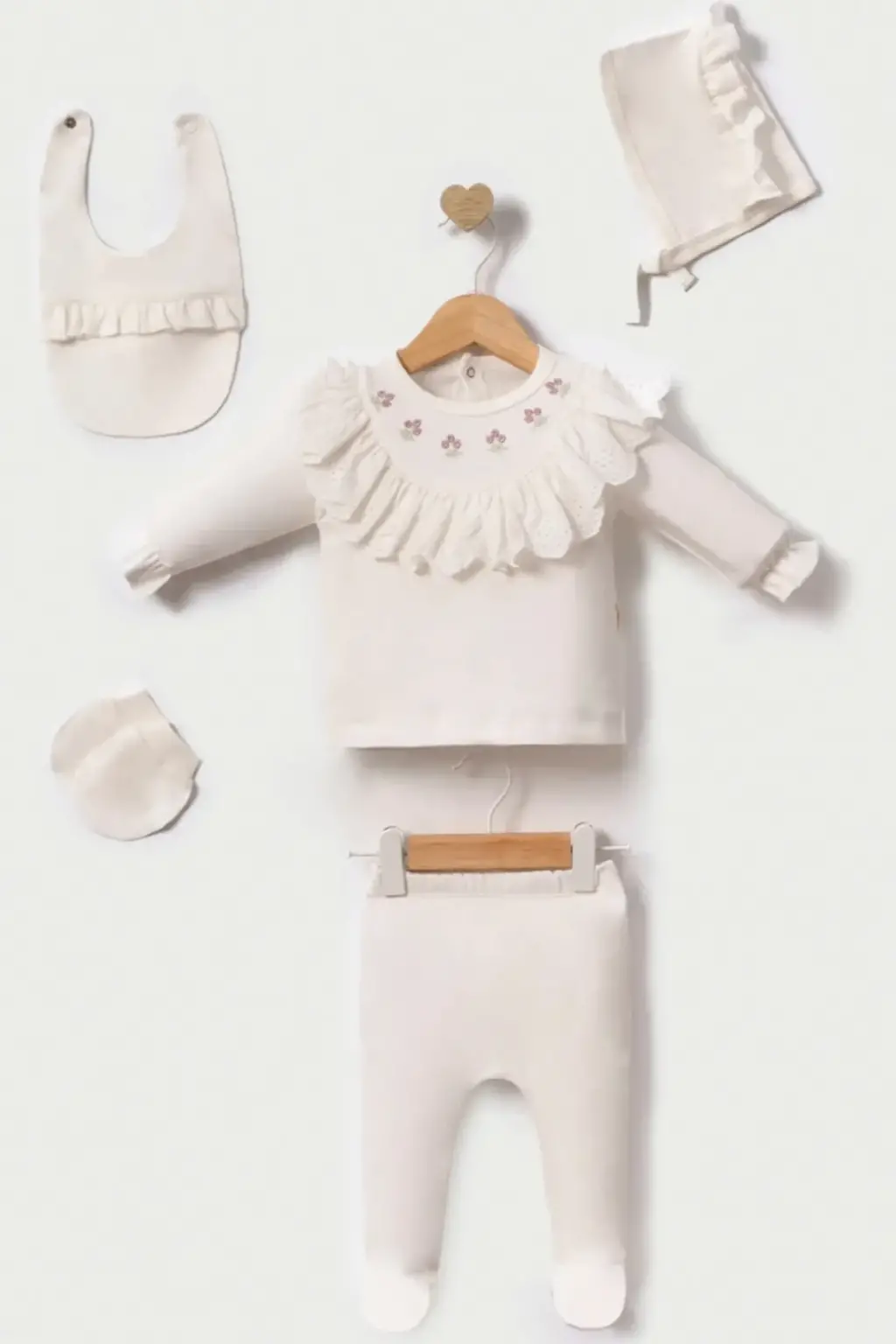 Lale Nakışlı Yenidoğan Kız Bebek 5 Parça Hastane Çıkışı Zıbın Seti