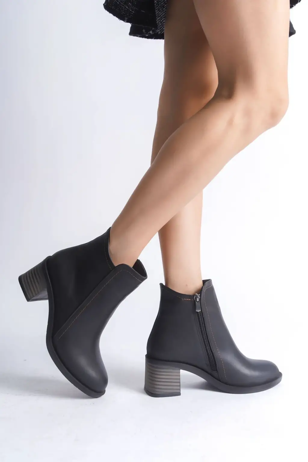 Omarı Fermuarlı Rahat Tabanlı Siyah Bayan Bot
