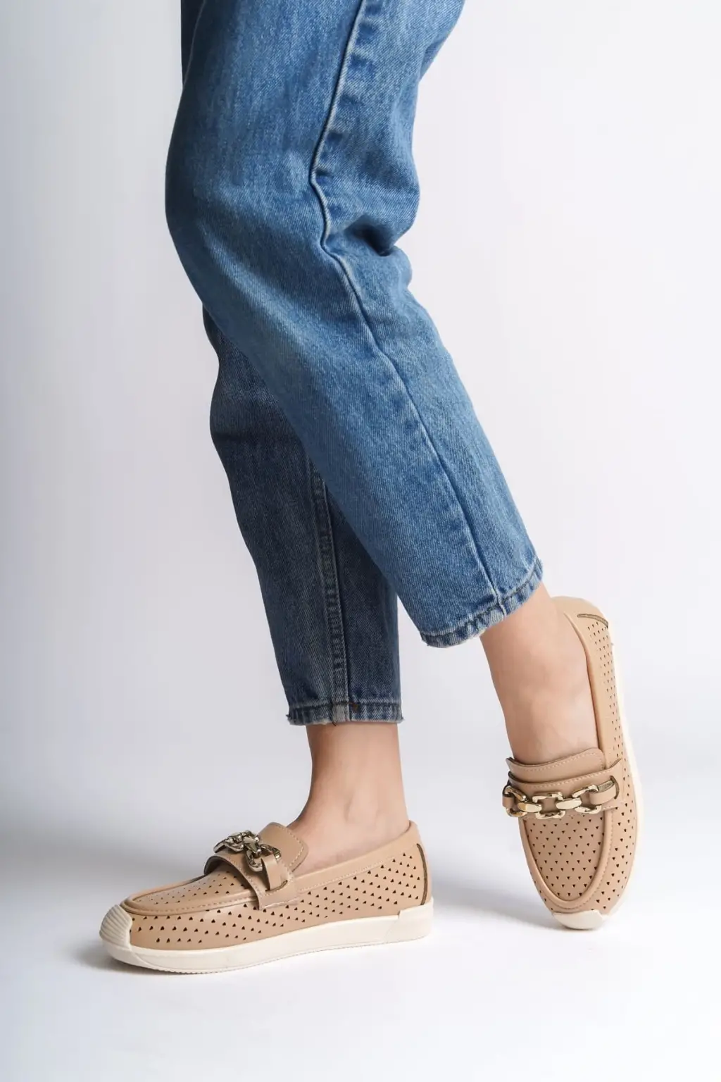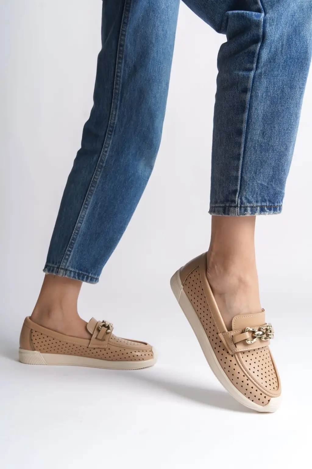Rahat Bayan Babet Ayakkabı Kalp Desenli Kısa Topuk