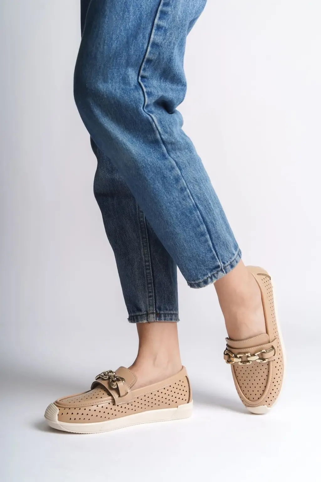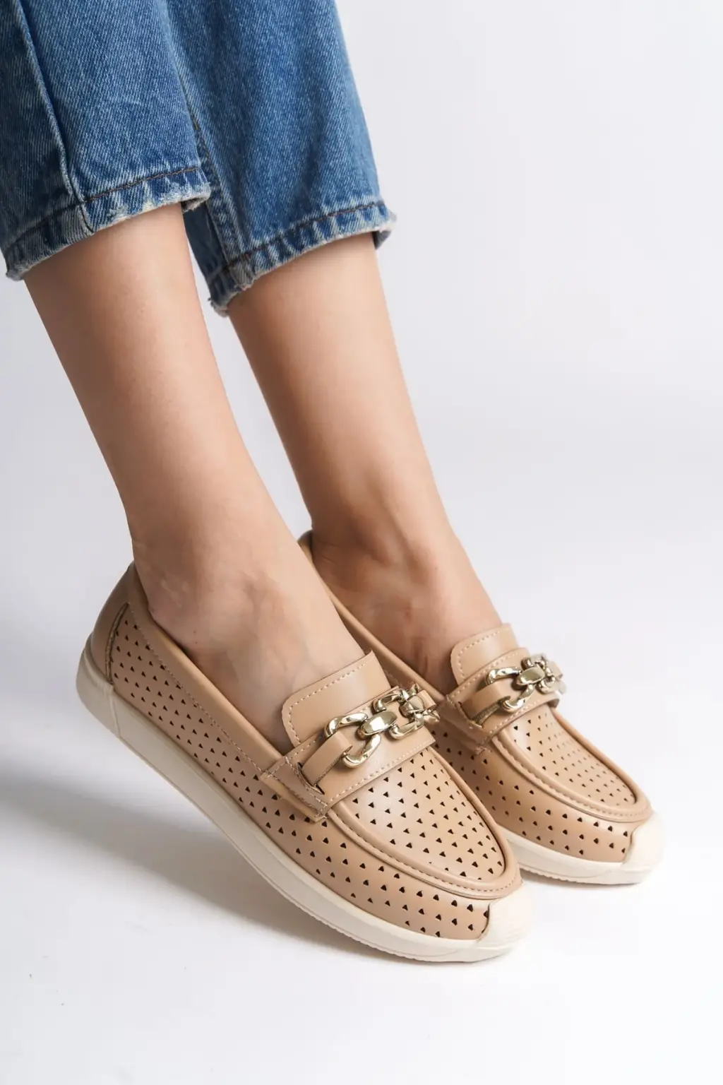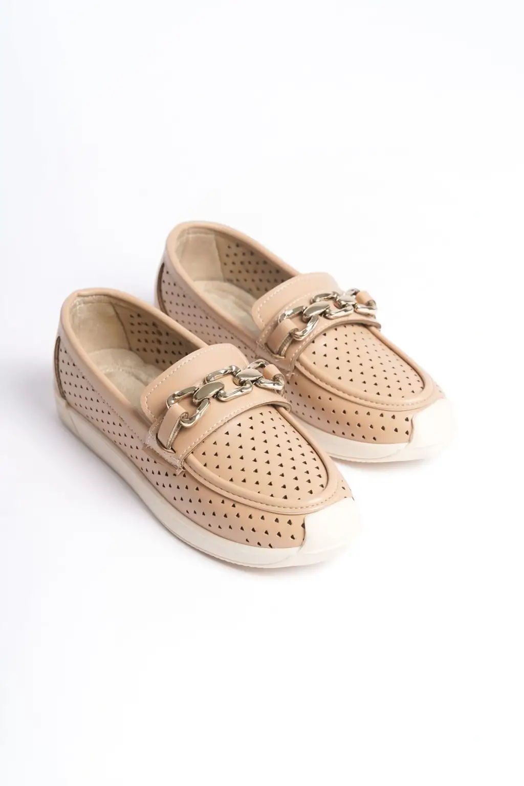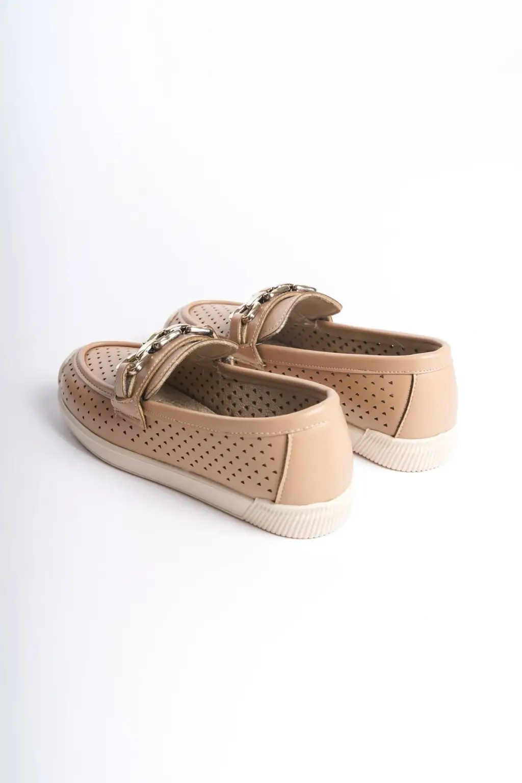 LAYLA Bağcıksız Rahat tabanlı ayakkabı Rahat Tabaan Kalp Desenli Bayan Babet Ayakkabı CKısa Topuk - Ten