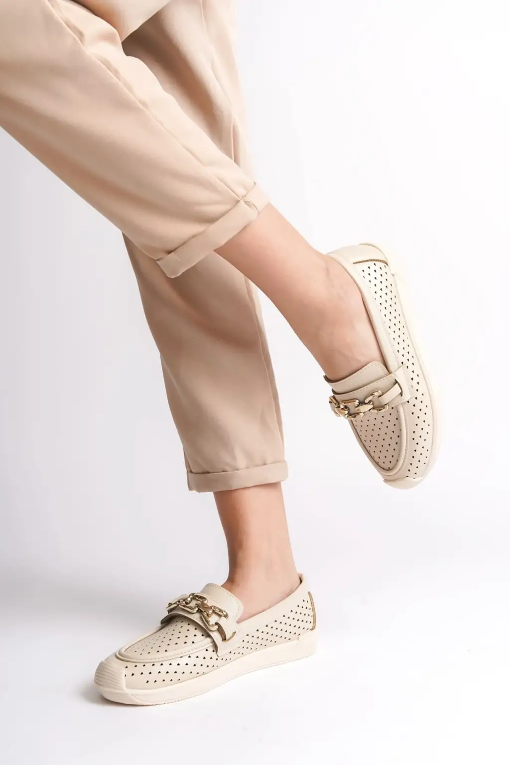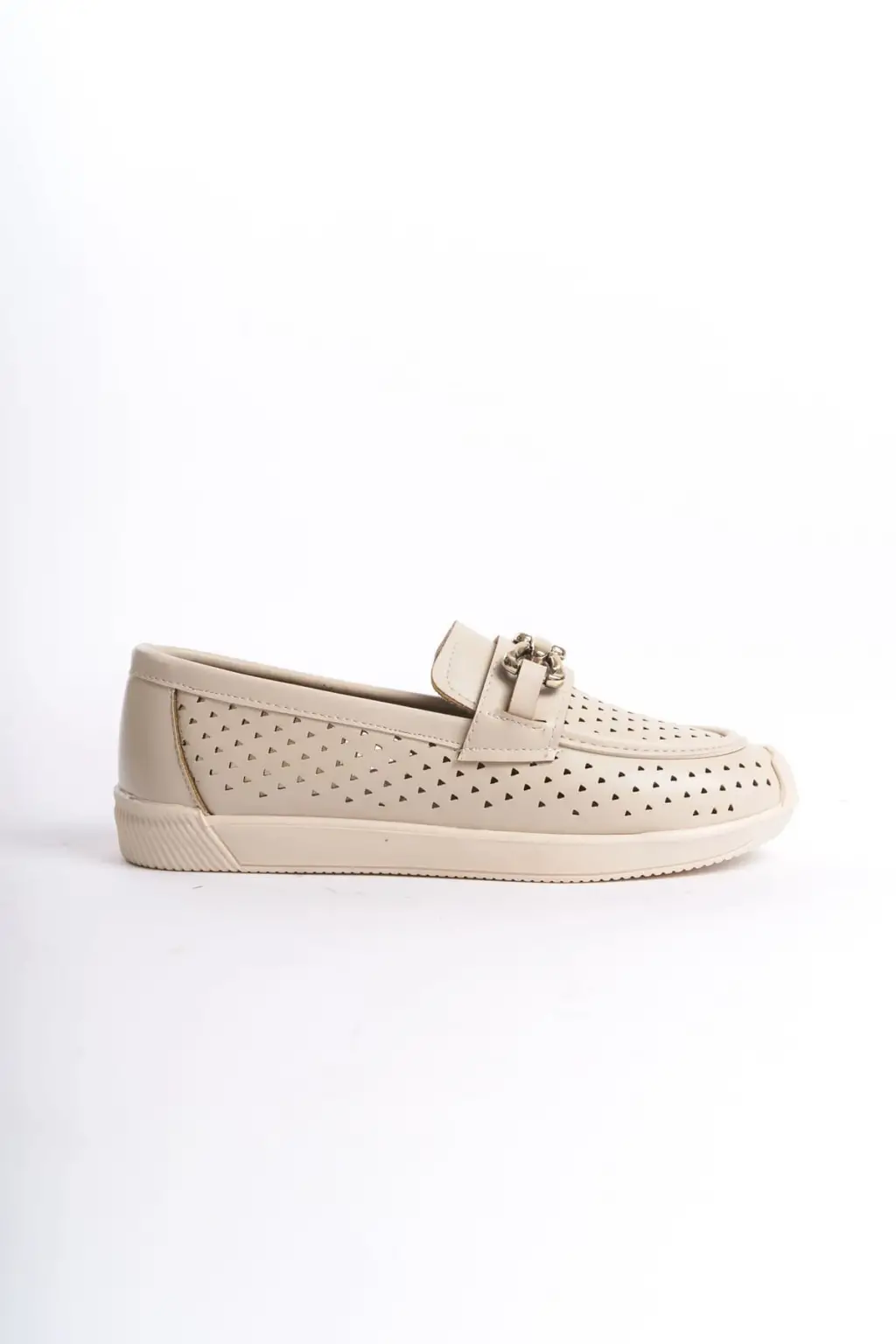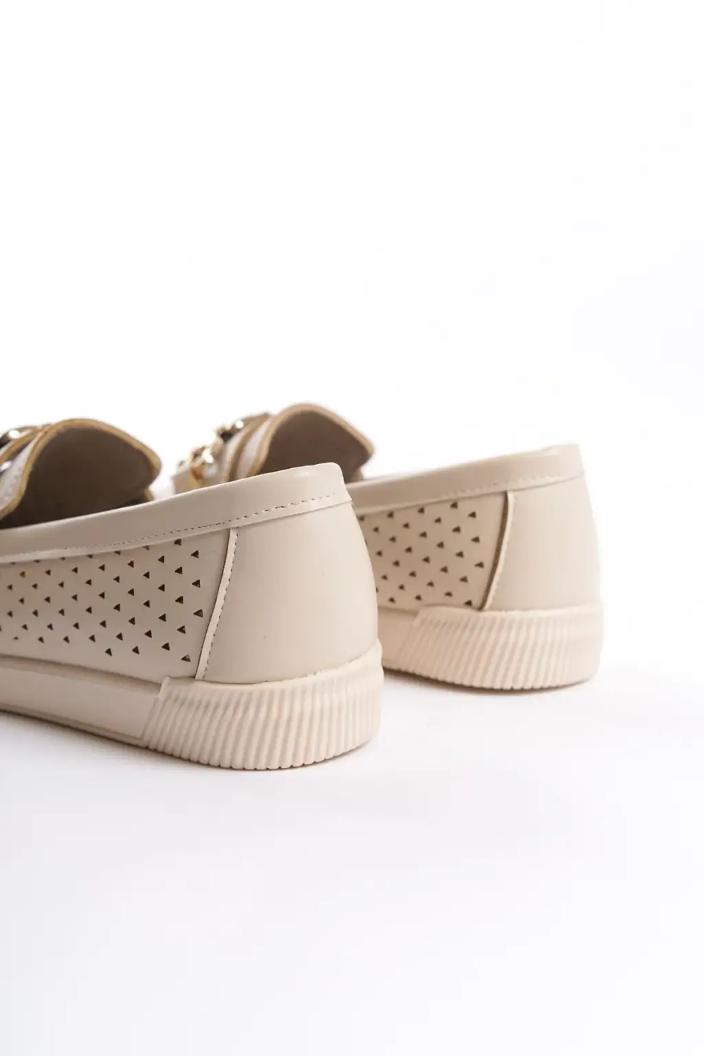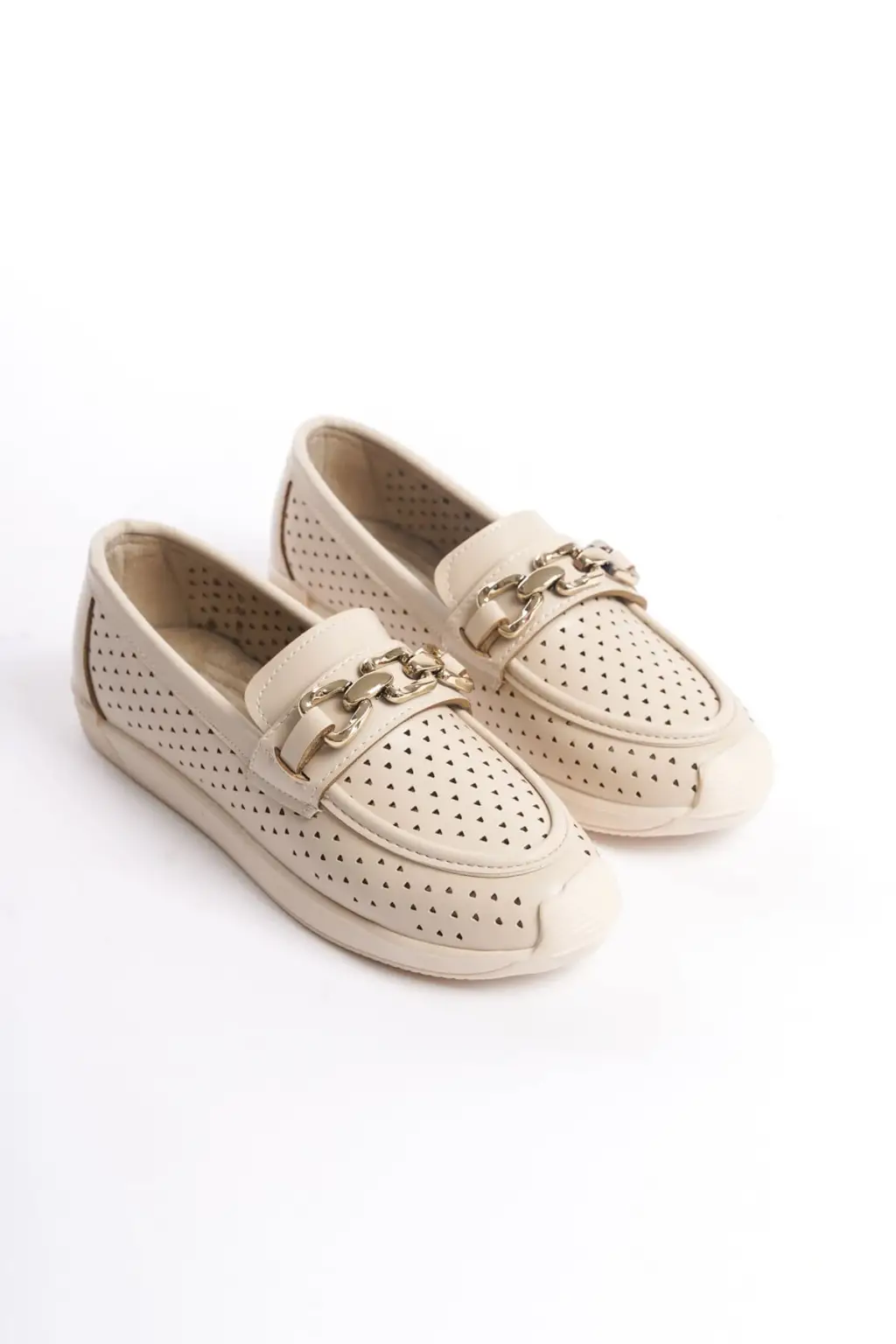 Omarı Rahat Tabanlı Kalp Desenli Bayan Babet Ayakkabı - Ten
