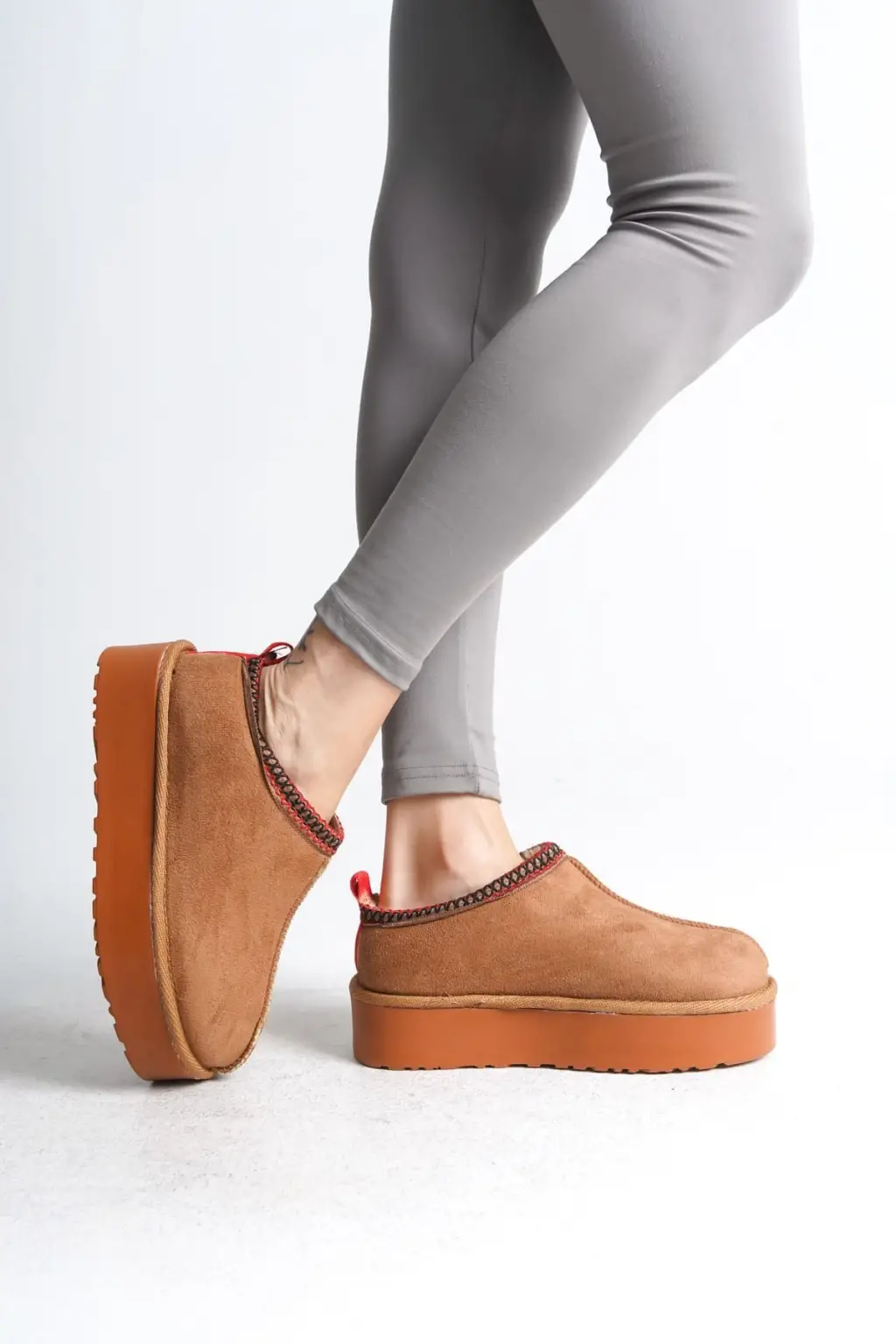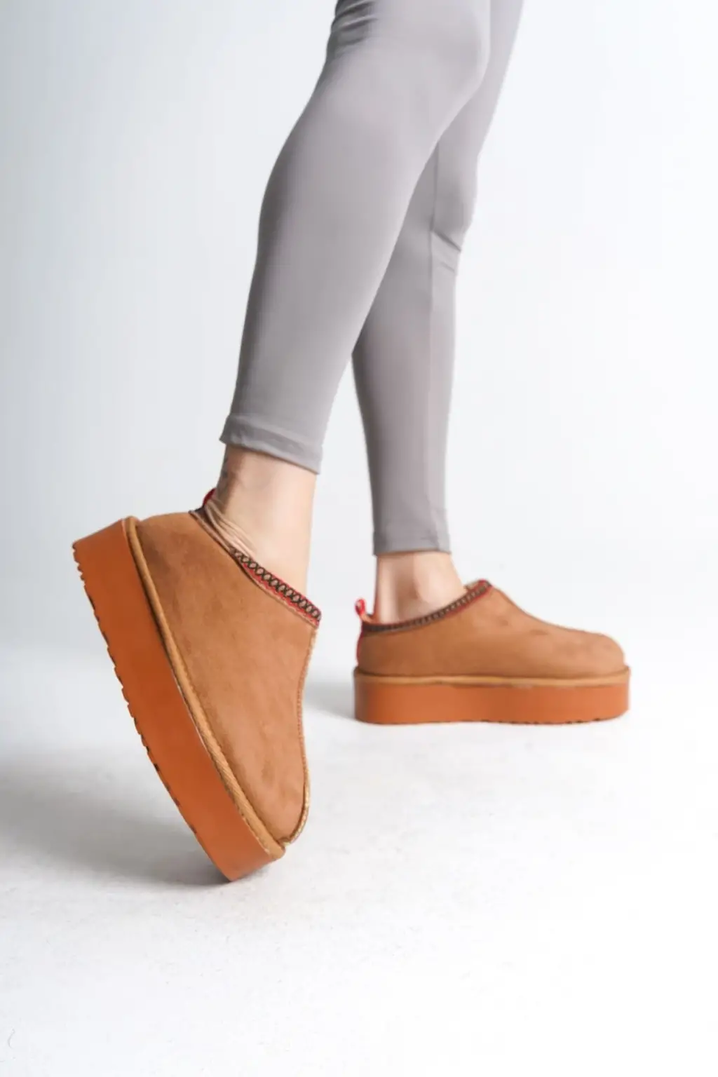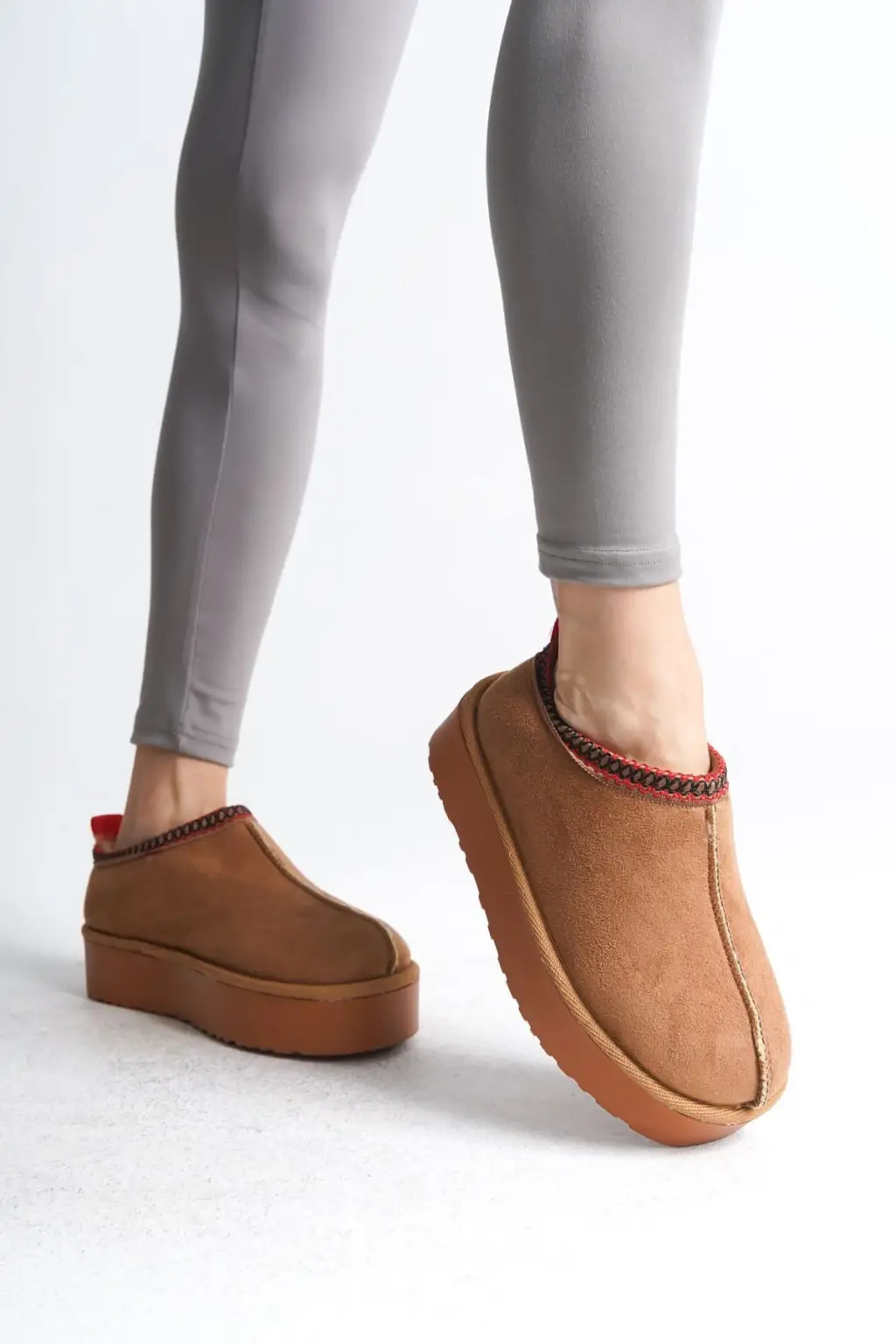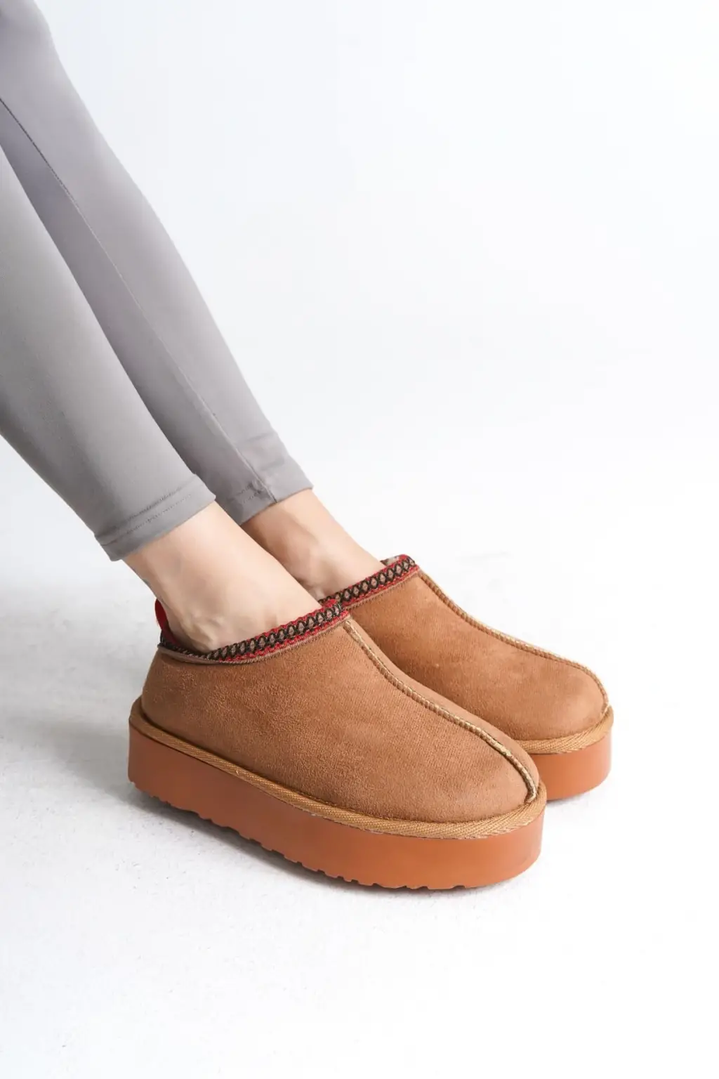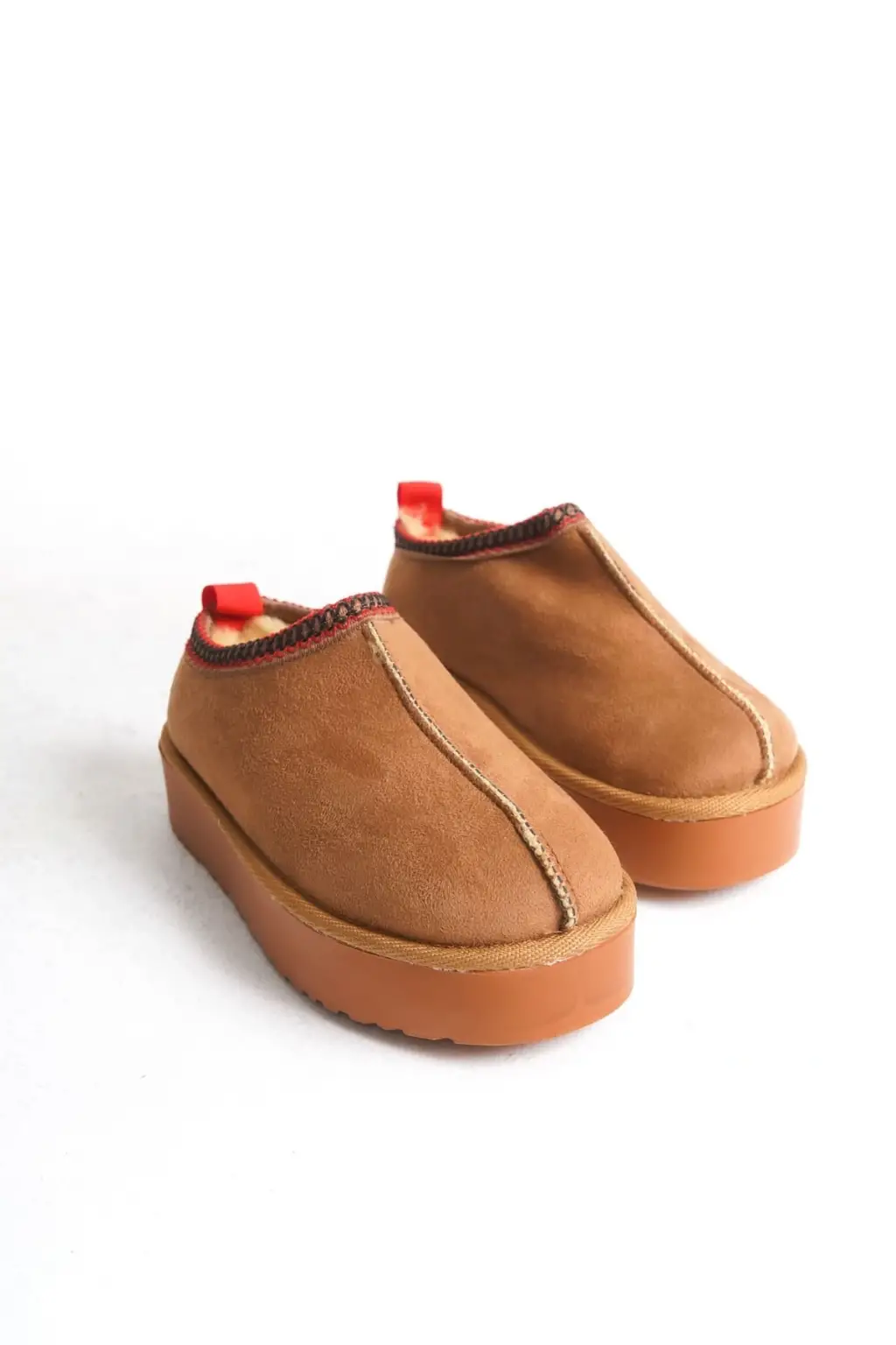 LEILA Bağcıksız Düz ve Kalın Tabaan İçi Kürklü Kısa Süet Bayan Bot Günlük ŞıkT - Taba