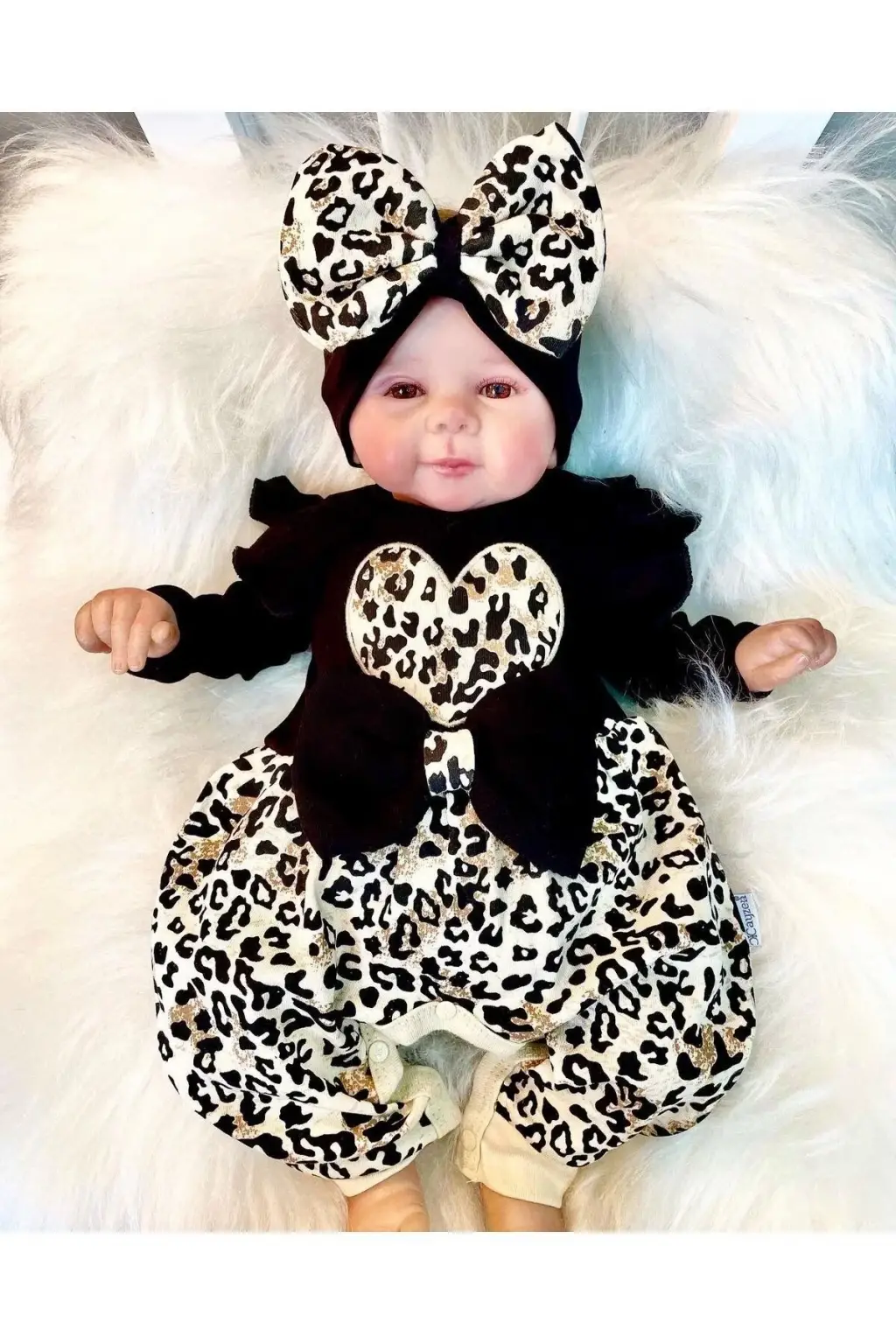 Leopar Desenli Fiyonklu % 100 Pamuk Kız Bebek Tulum