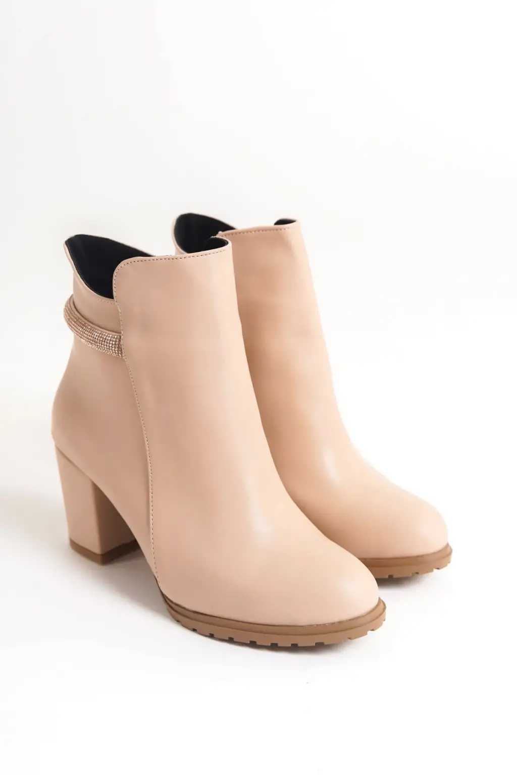 Omarı Siyah Taşlı Topuklu Bayan Bot, Rahat Tabanlı, Günlük Şık
