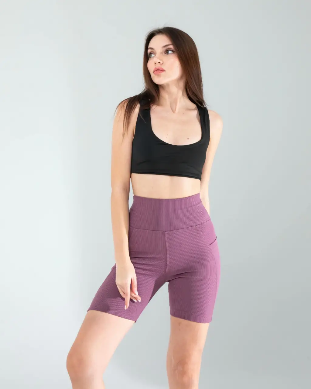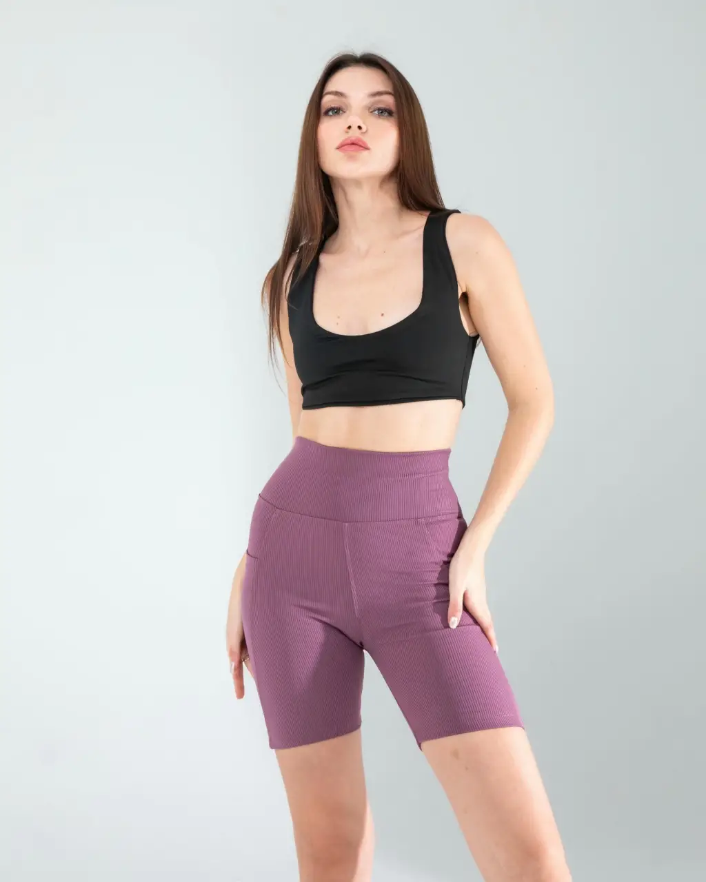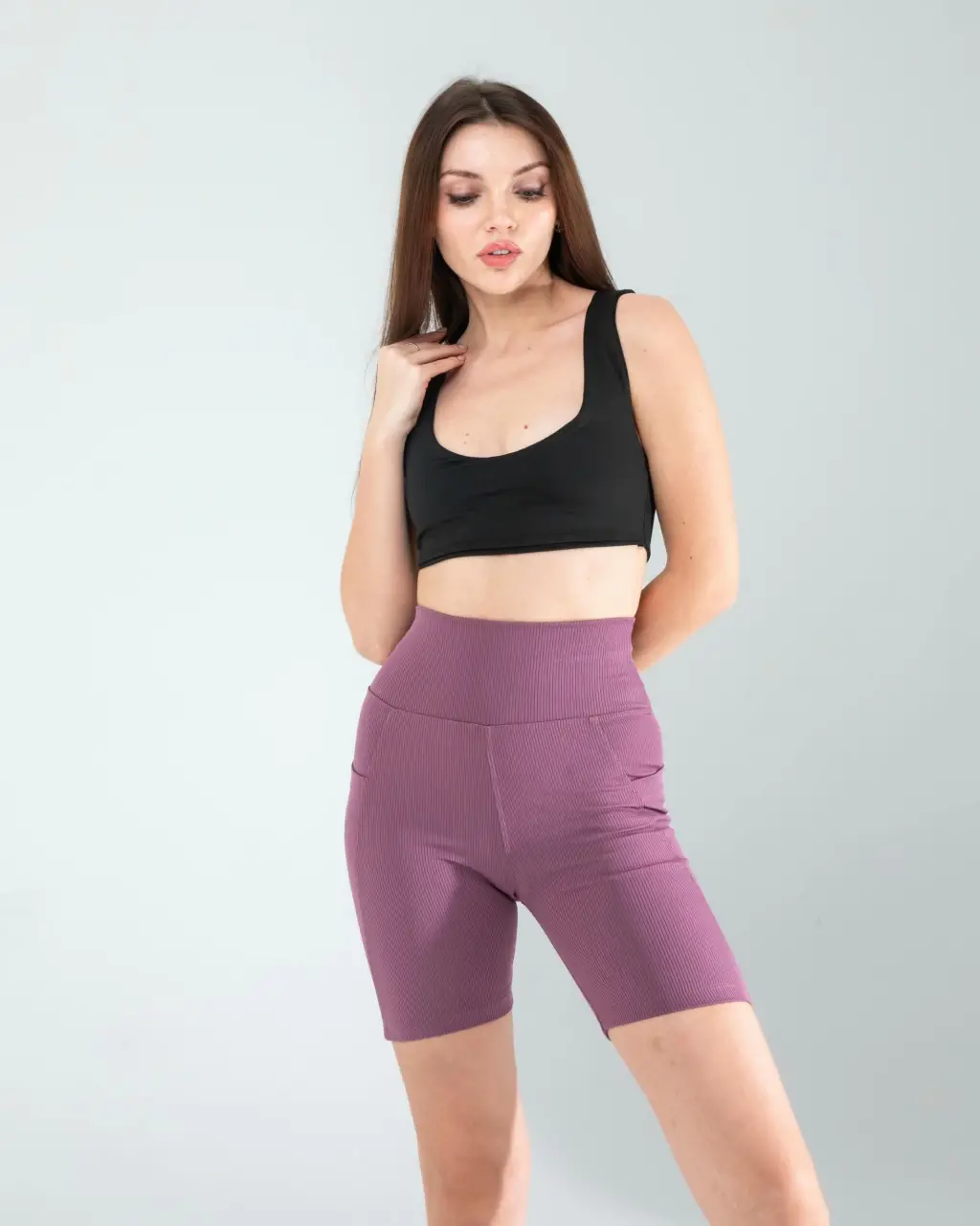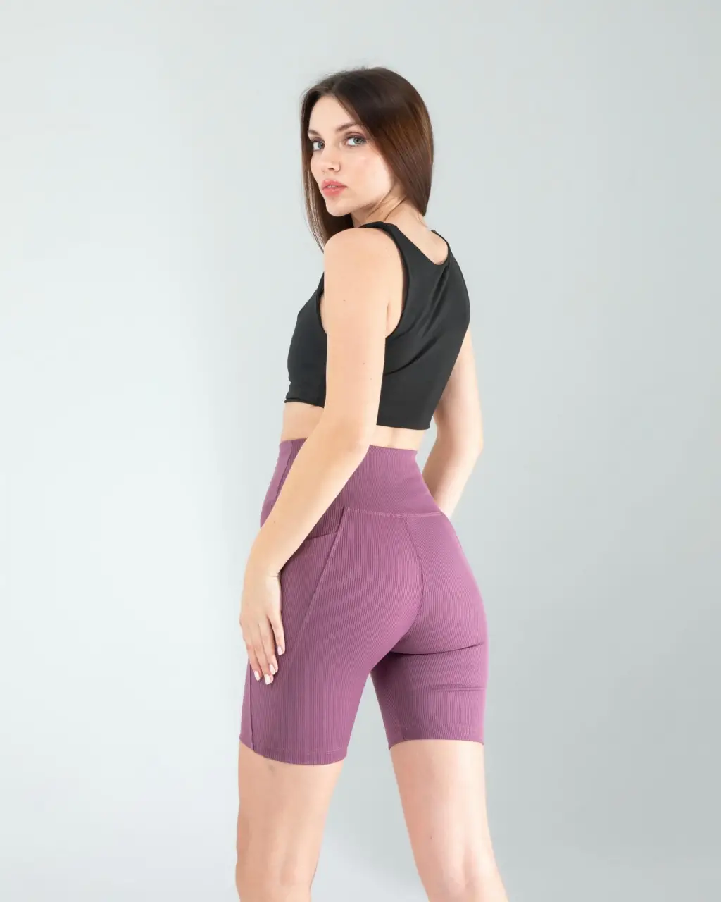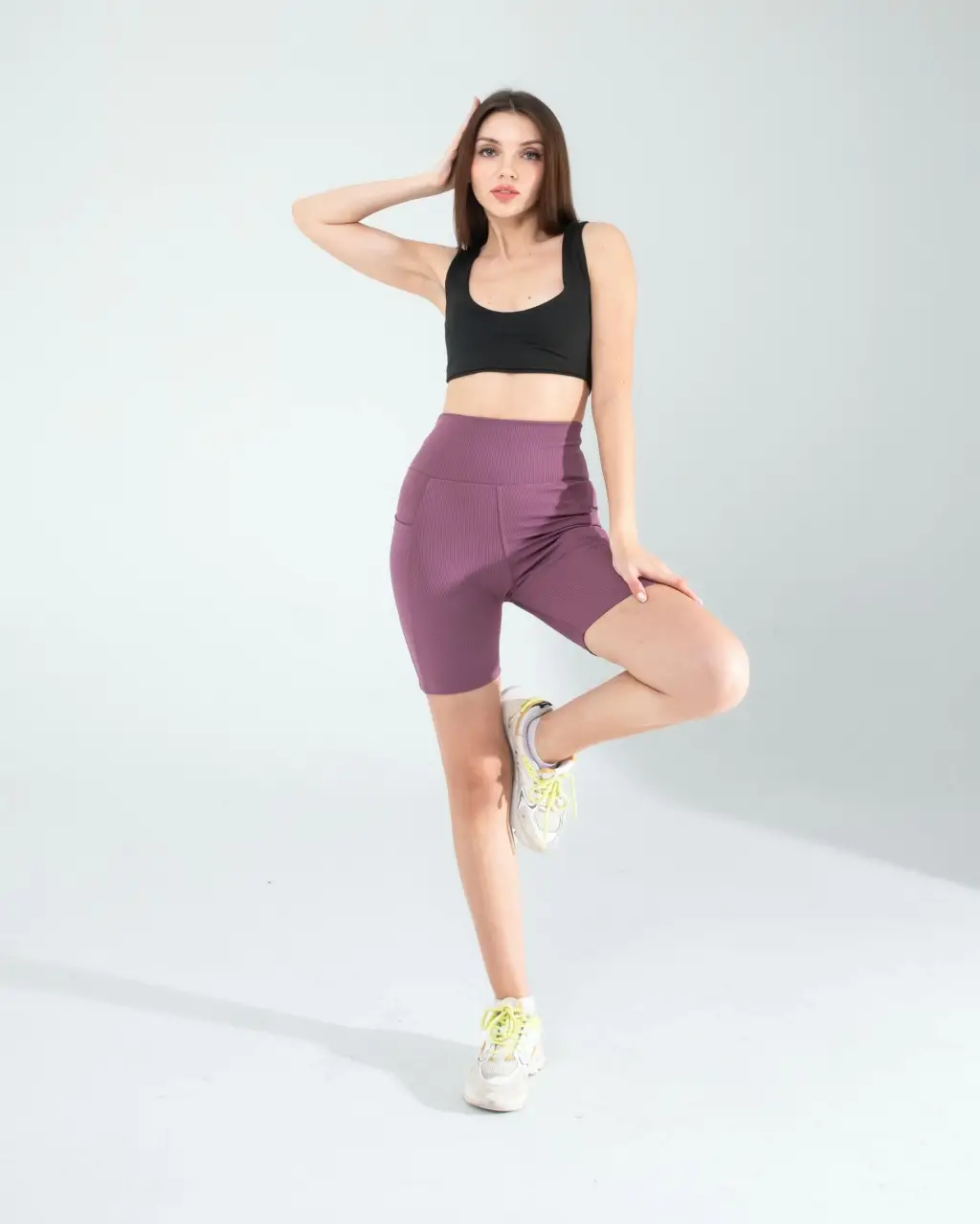 Lila Fitilli Push Up Toparlayıcı Biker Spor Tayt