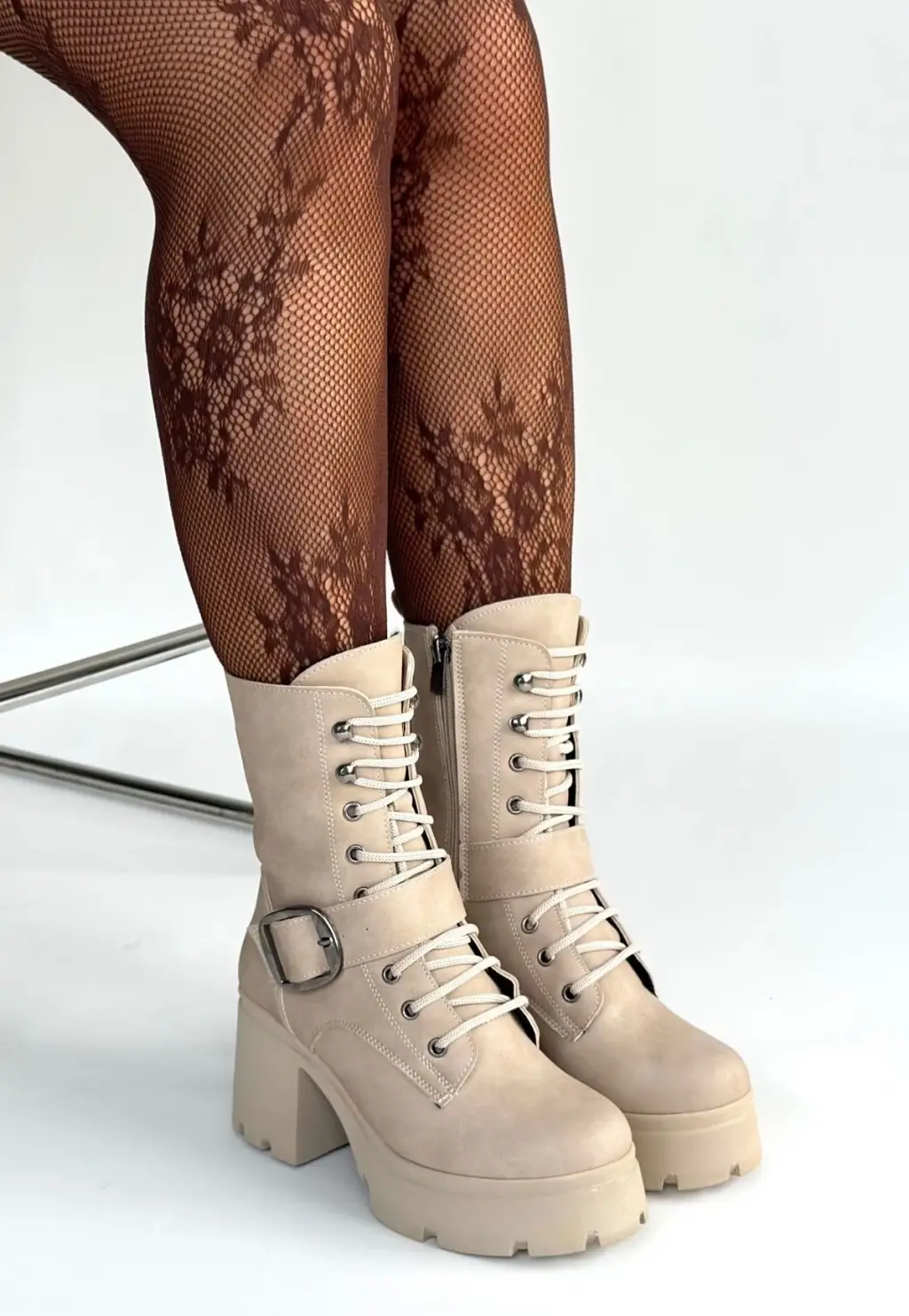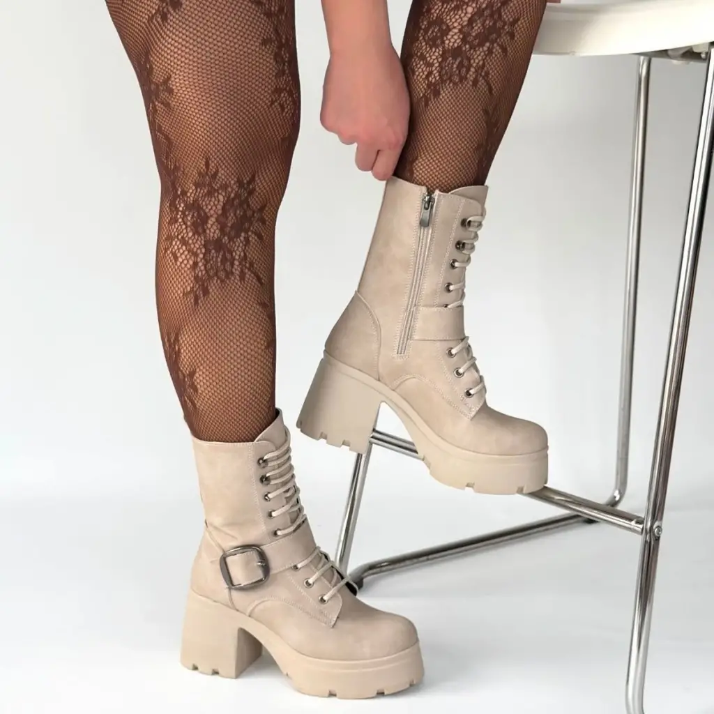 Linma Bej Nubuk Bağcıklı Topuklu Bot