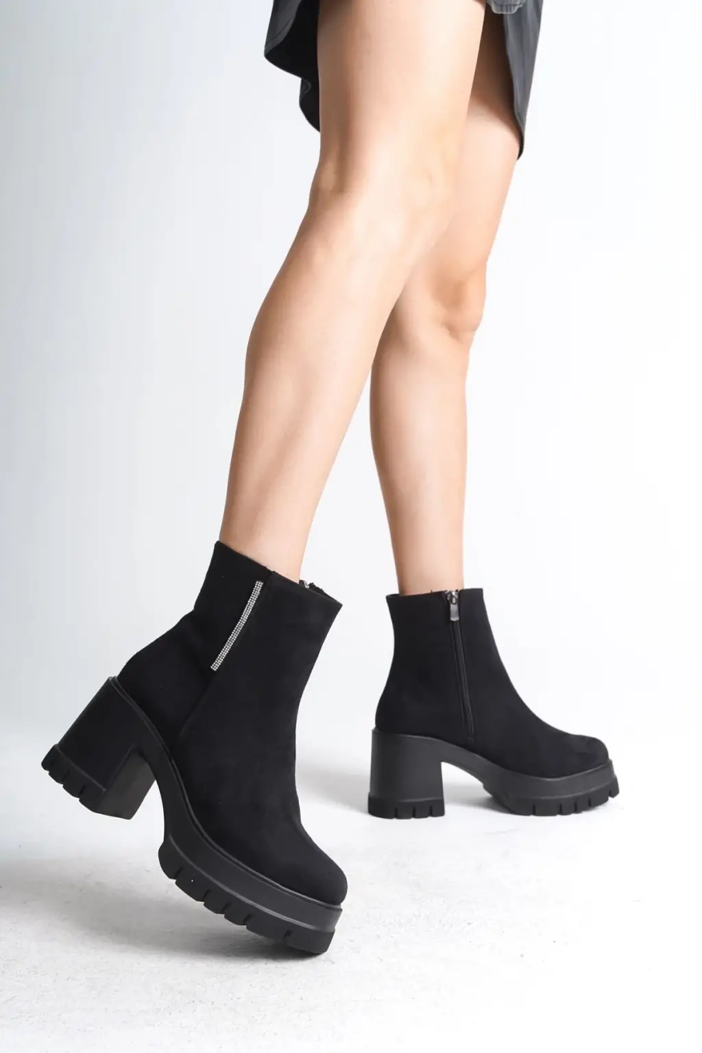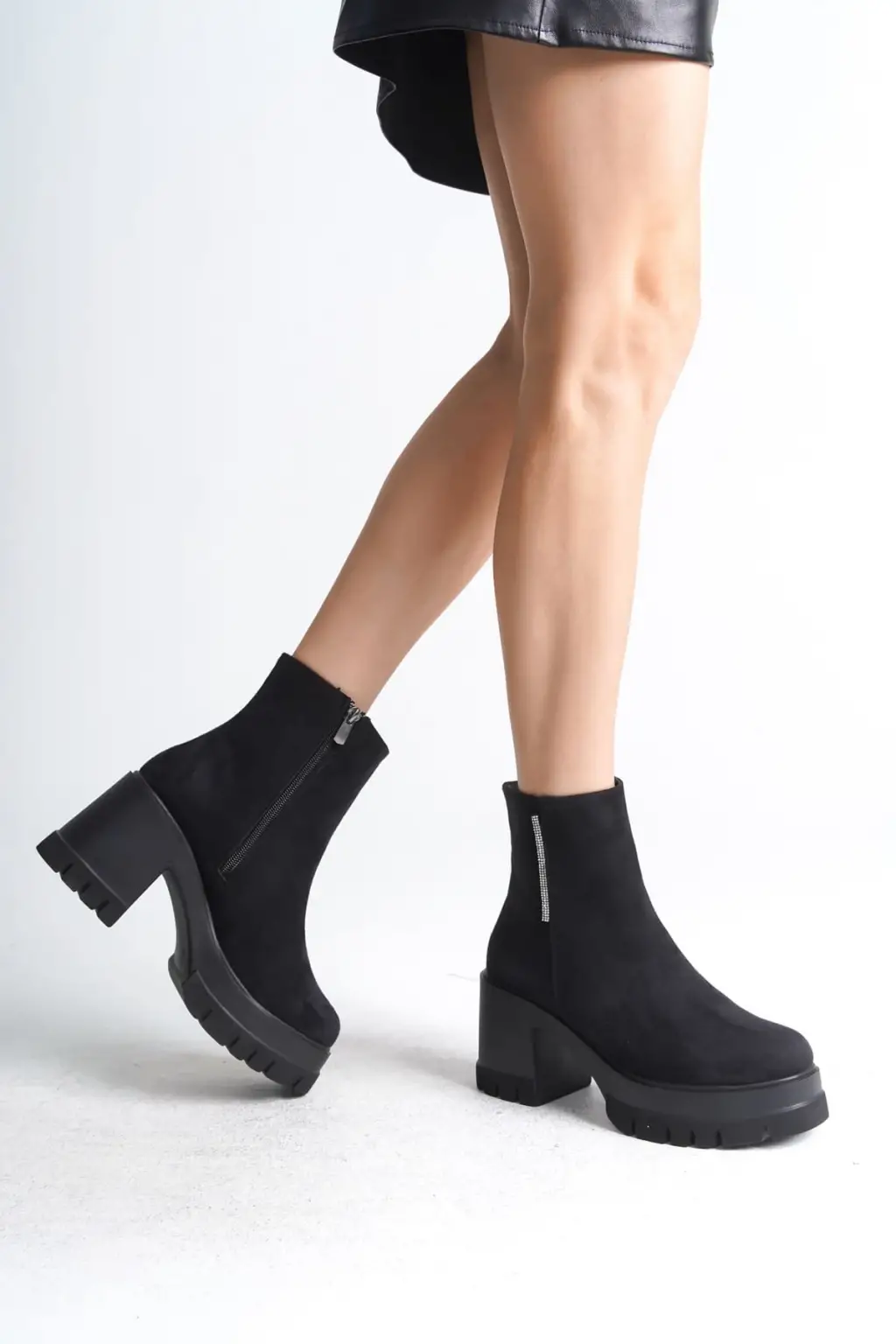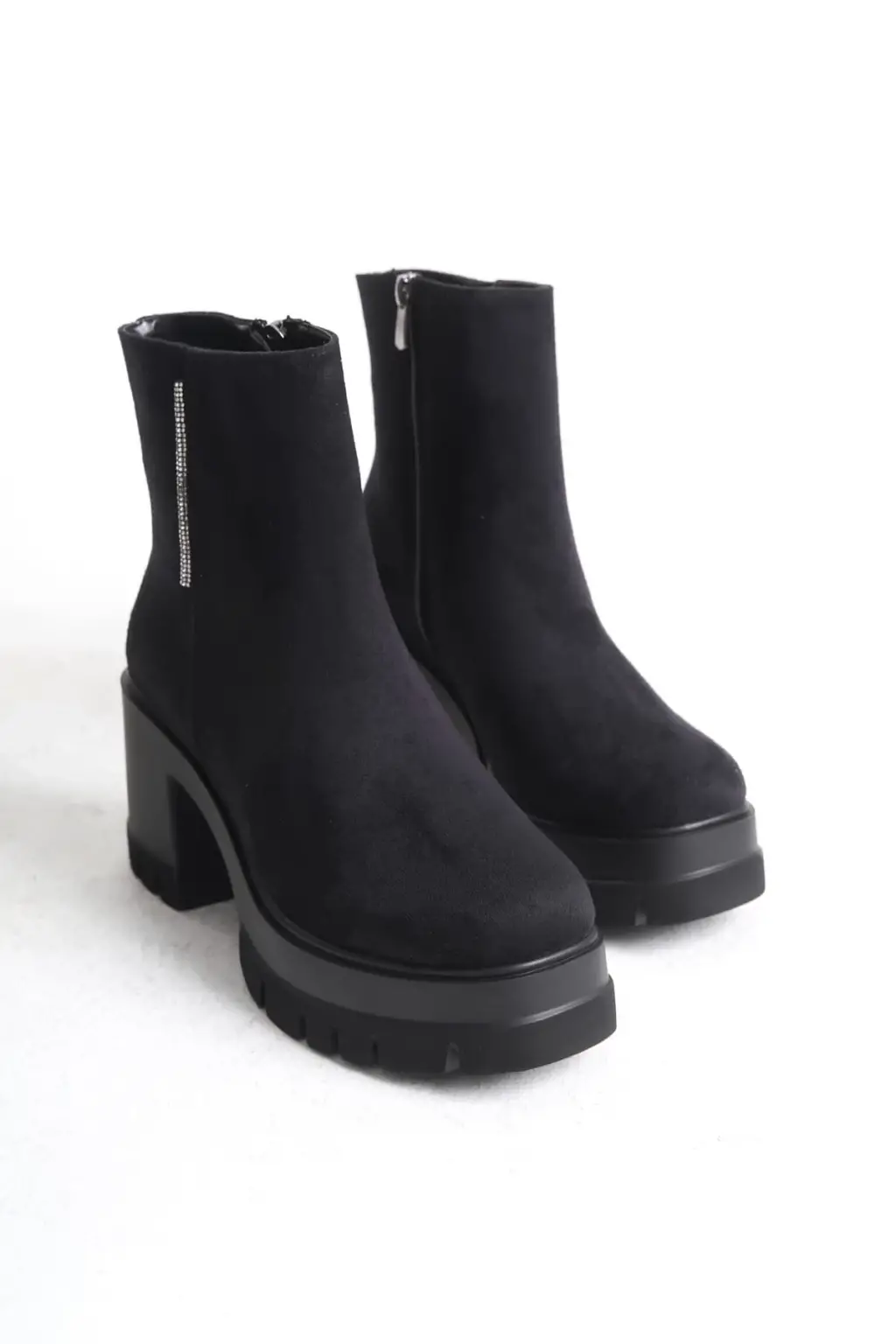 Omarı Süet Bayan Bot - Kalın Topuklu, Rahat Tabanlı Bot - Siyah