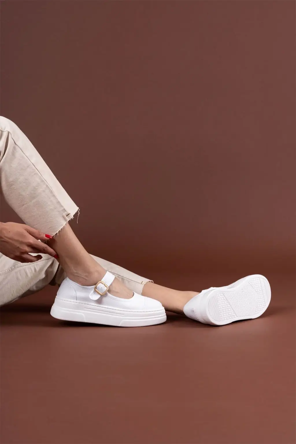 Omarı Hafif ve Şık Beyaz Keten Spor Ayakkabı