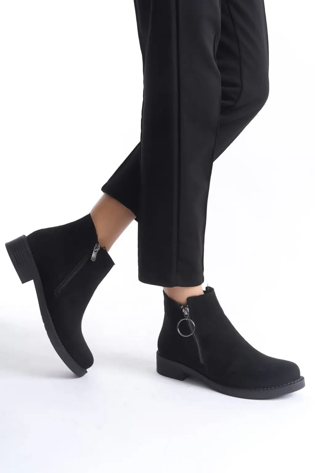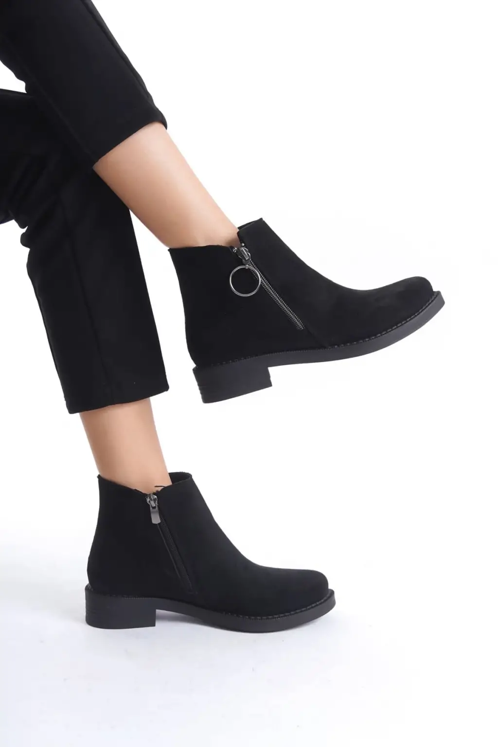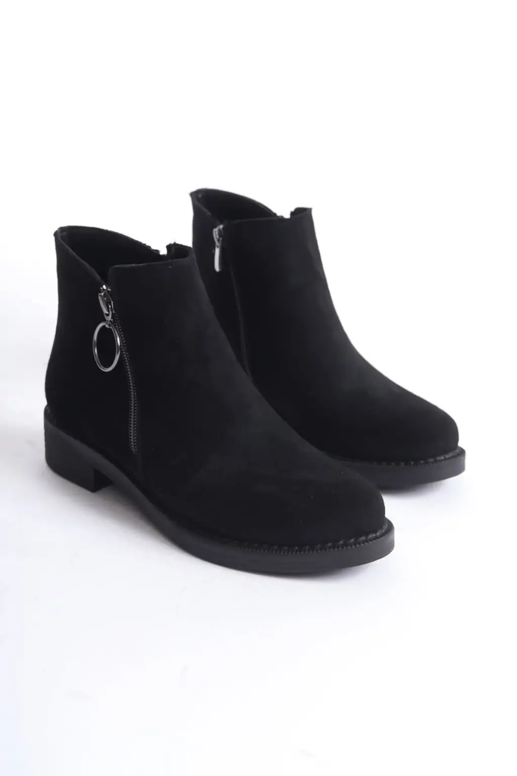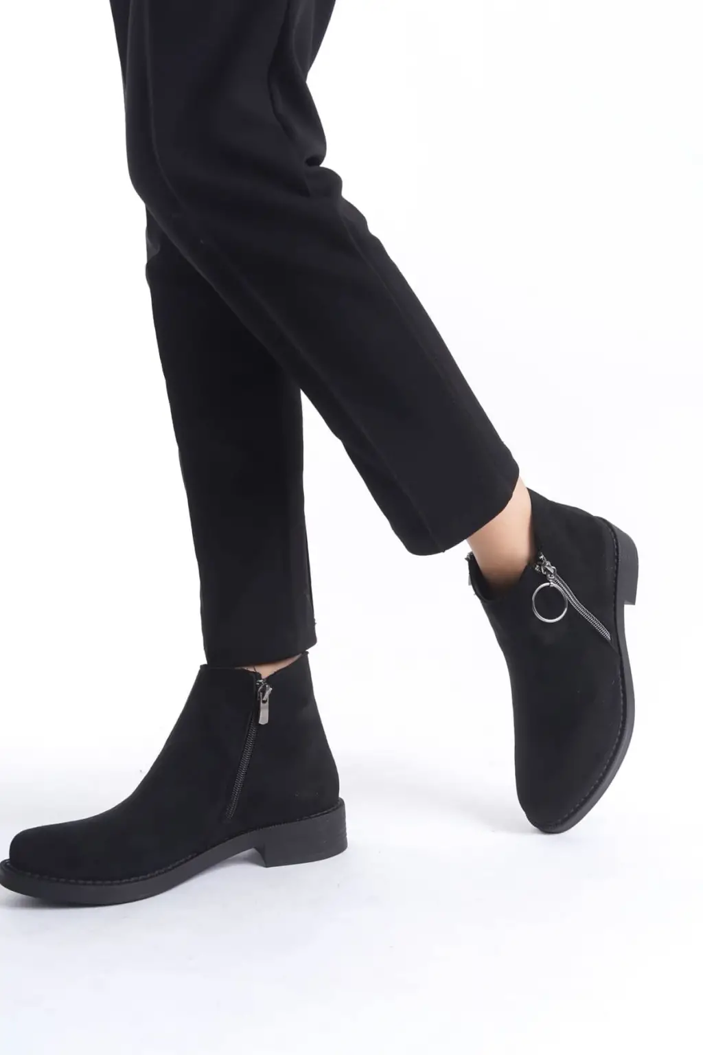 Omarı Rahat Tabanlı Süet Bayan Bot - Şık ve Konforlu Siyah Ayakkabı