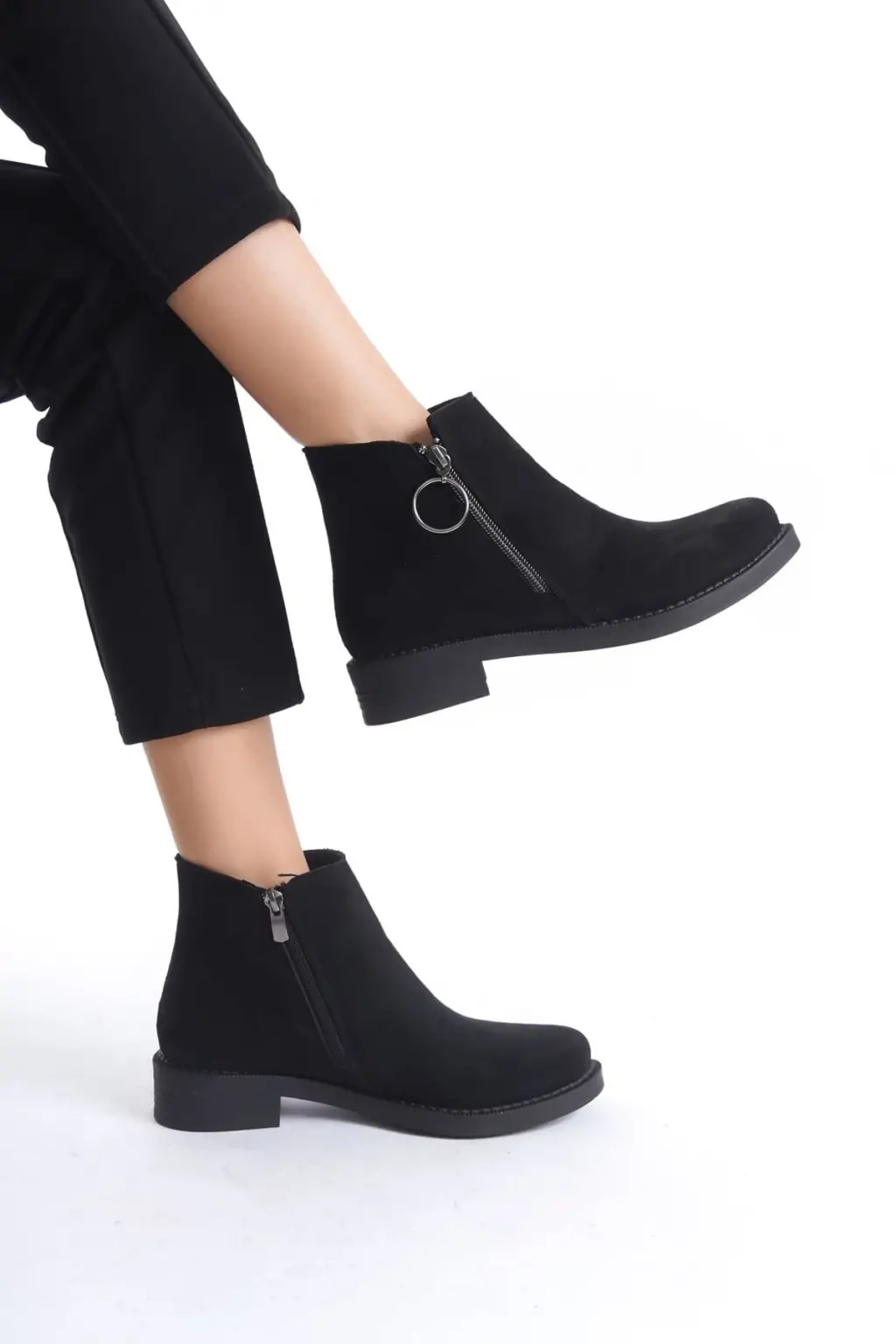 Zarif Fermuarlı Süet Bayan Bot