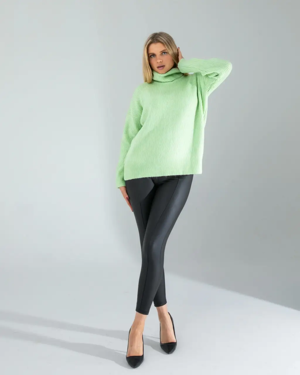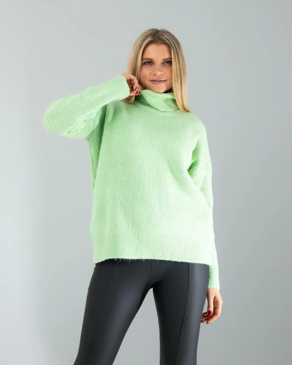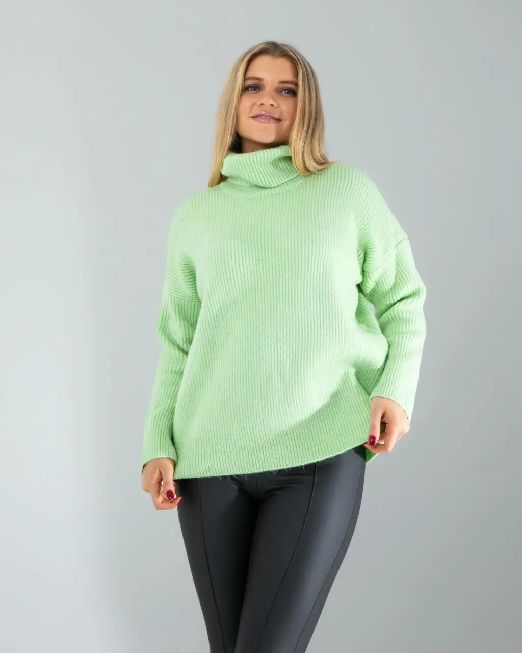 Şoğuk kış günlerinde hem şıklığı hem de rahatlığı bir arada sunar. Yumuşak dokusu ve salaş kesimi ile gün boyu konfor sağlar. Balıkçı yaka detayı, boyun bölgesini sıcak tutarken, mint rengi ile ferah ve modern bir görünüm kazandırır. Bu kazak, günlük kombinlerinizde ve ofis şıklığında vazgeçilmez bir parça olacak. Triko kumaşı sayesinde nefes alabilir ve terletmez. Oversize kesimi ile her bedene uyum sağlar ve hareket özgürlüğü sunar.