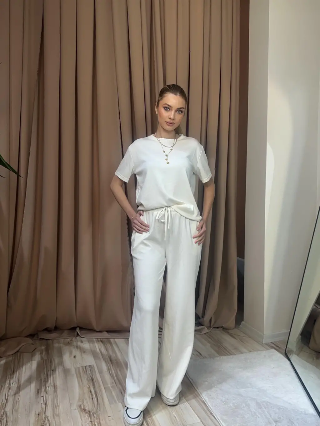 Modal alt üst takım, şık ve rahat bir kombin sunar.