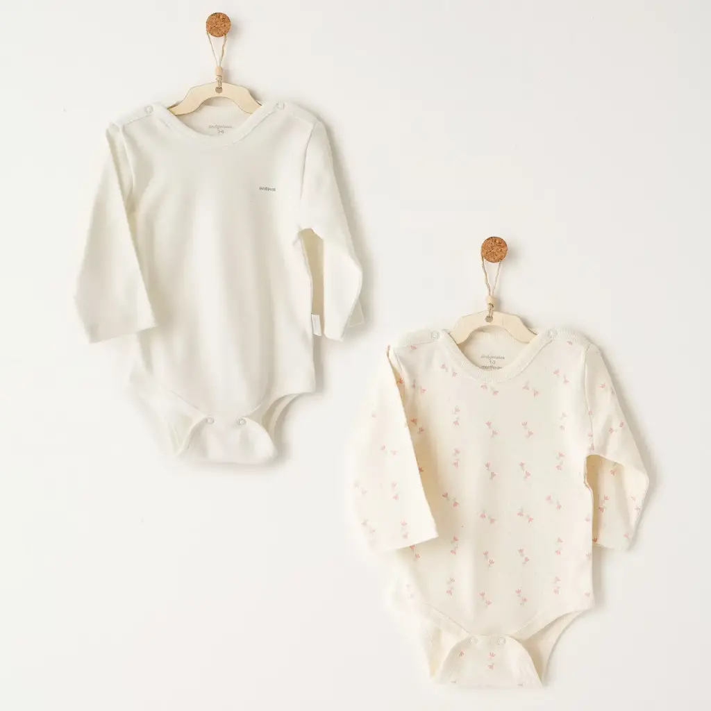 Bistyle Flying Bloom White Yarım Kol 2'li Body 17118 Ekru Gül Kurusu