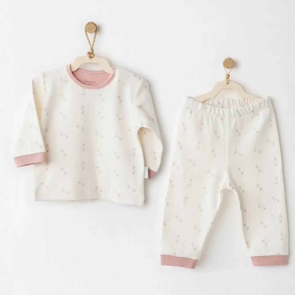 4-10 yaş kız çocuk pembe Armalı yeşilbiye detaylı alt üst ikili takım
