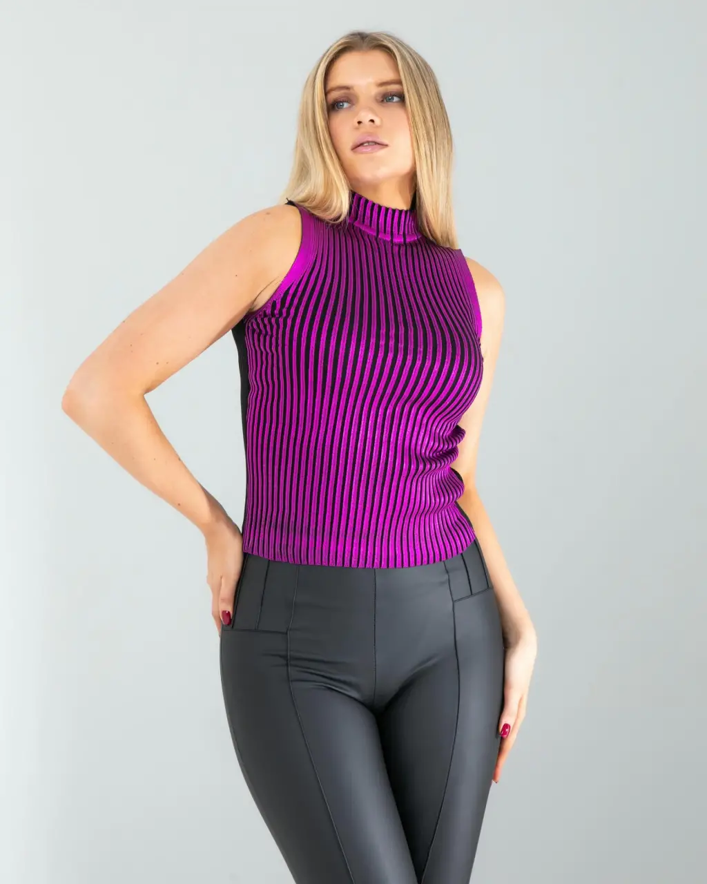 Mor Varaklı Bisiklet Yaka Triko