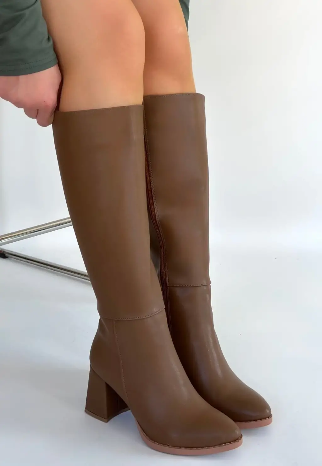 Detay : Topuklu Yandan Fermuarlı Diz Altı Çizme