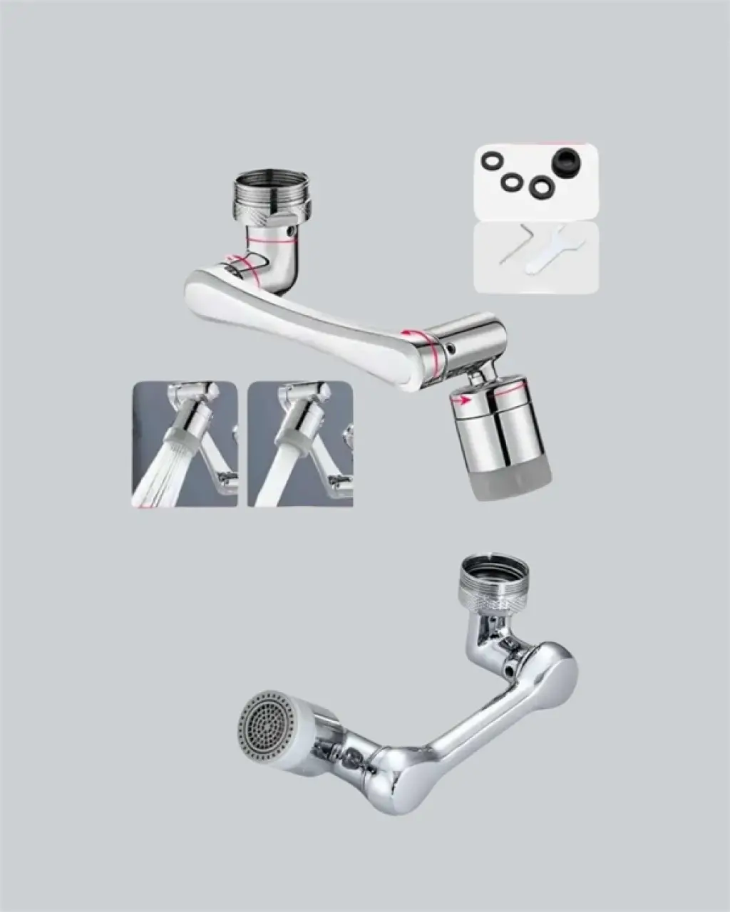 1080° Dönebilen Musluk Ucu – Su Tasarruflu, Esnek Ve 360° Çift Eksenli Başlık (kopya)
