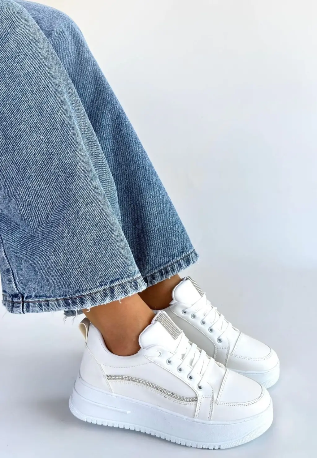 Natte Beyaz Cilt Bağcıklı Spor Ayakkabı