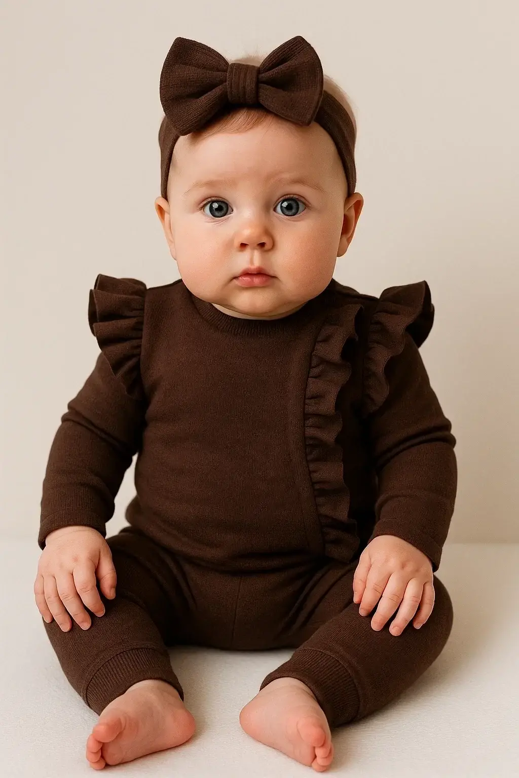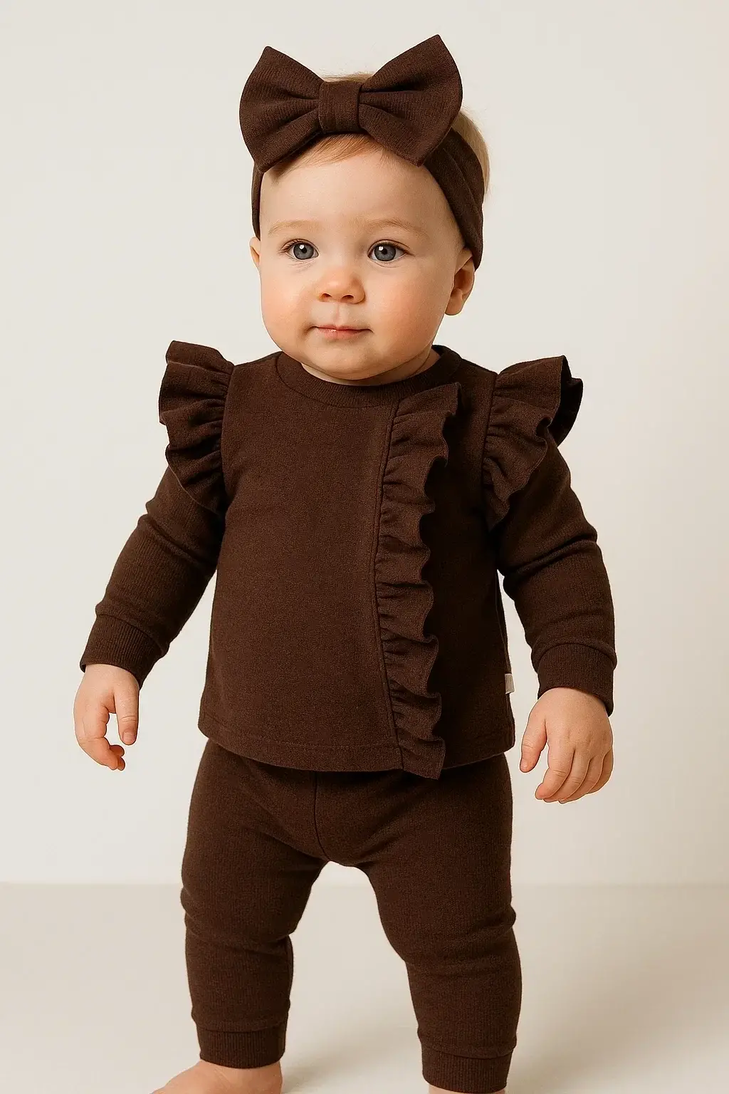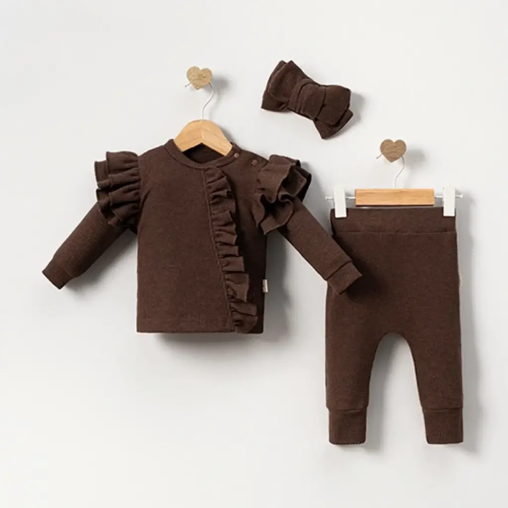Orkide Büzgü Detaylı 3 Parça Kız Bebek Takımı %100 Pamuk