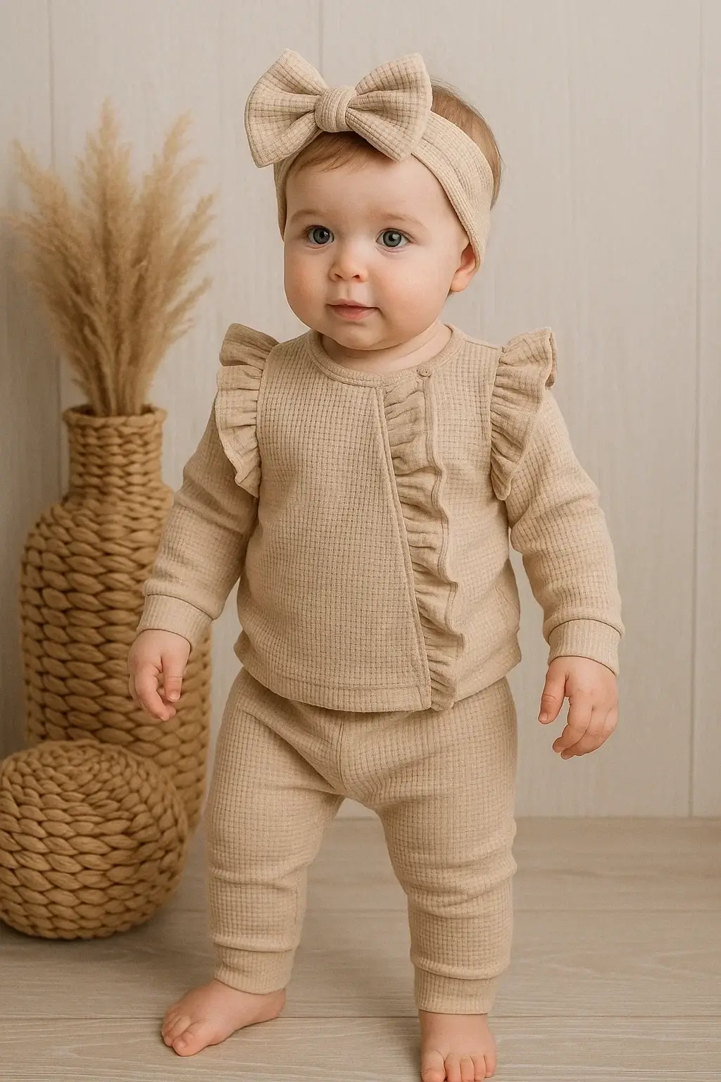 Orkide Desenli Fisto Detaylı 3 Parça Kız Bebek Takımı %100 Pamuk
