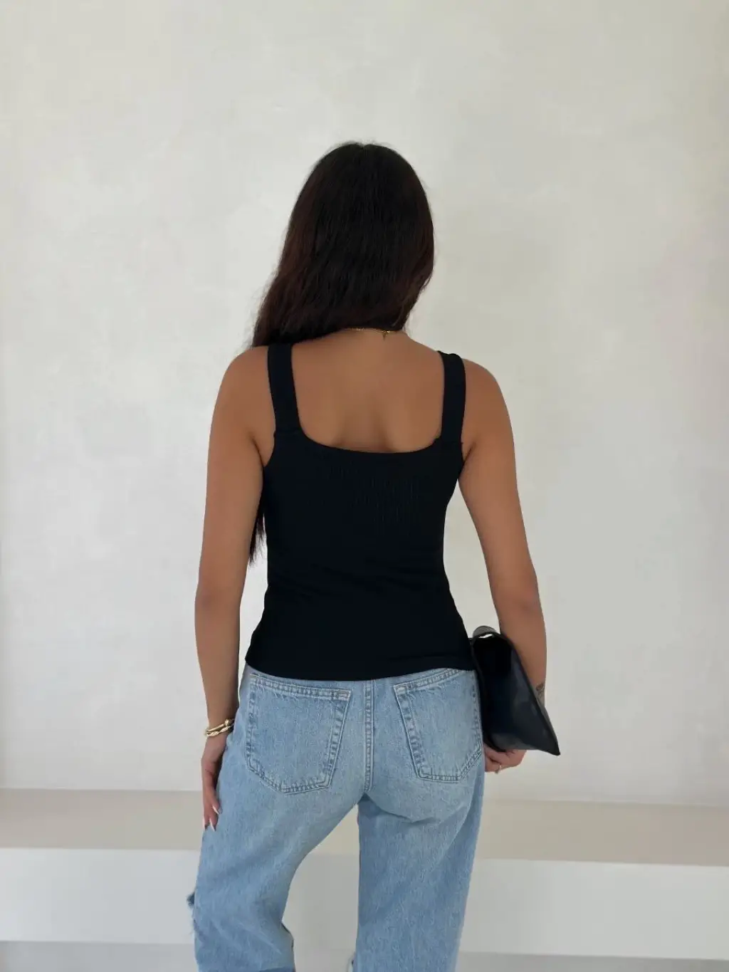 Ottoman toka askılı bluz siyah s4194, şıklığı ve rahatlığı bir arada sunar.