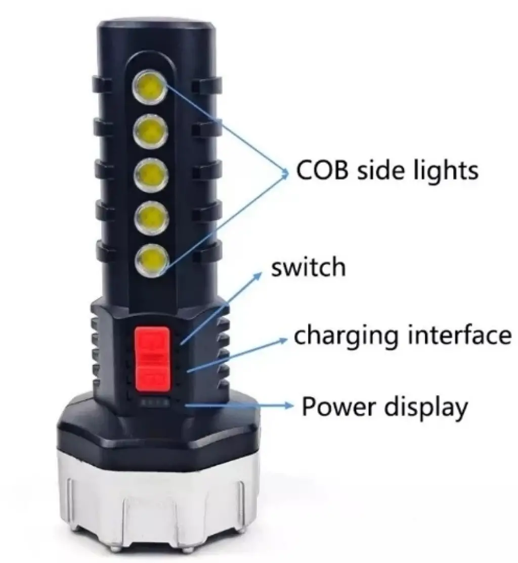 Gold-police Gp-282 Uzun Menzilli Güçlü Şarjlı 10000 Lümen El Feneri 11 Mod Çakar Işıklı Kırmızı-mavi-yeşil Led