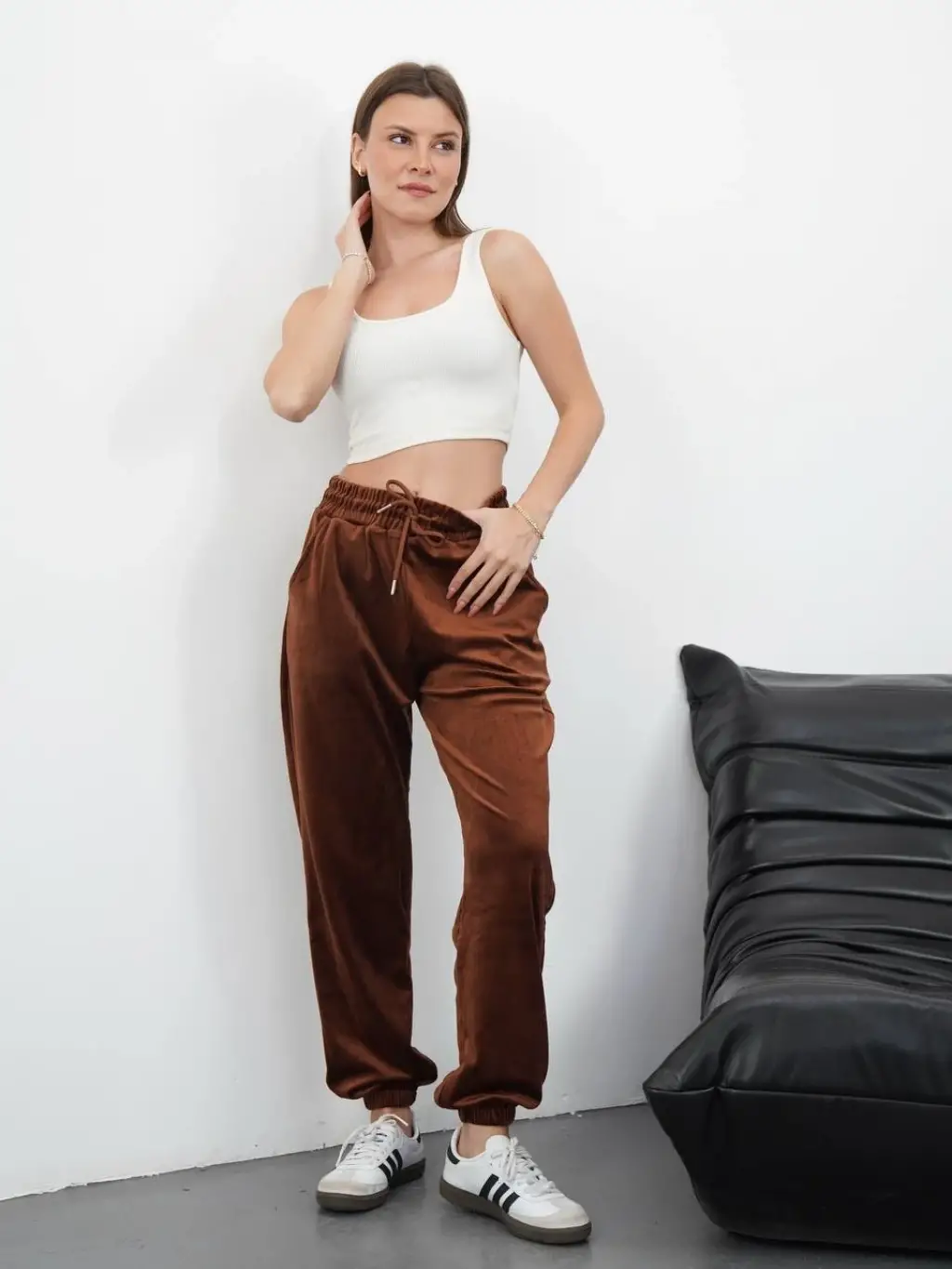 Paça lastikli kadife eşofman, şıklığı ve rahatlığı bir arada sunuyor. MD34 markasıyla tasarlanan bu eşofman, kadın giyim kategorisindeki favori parçalarınızdan biri olmaya aday. İşte bu eşofmanın özellikleri: